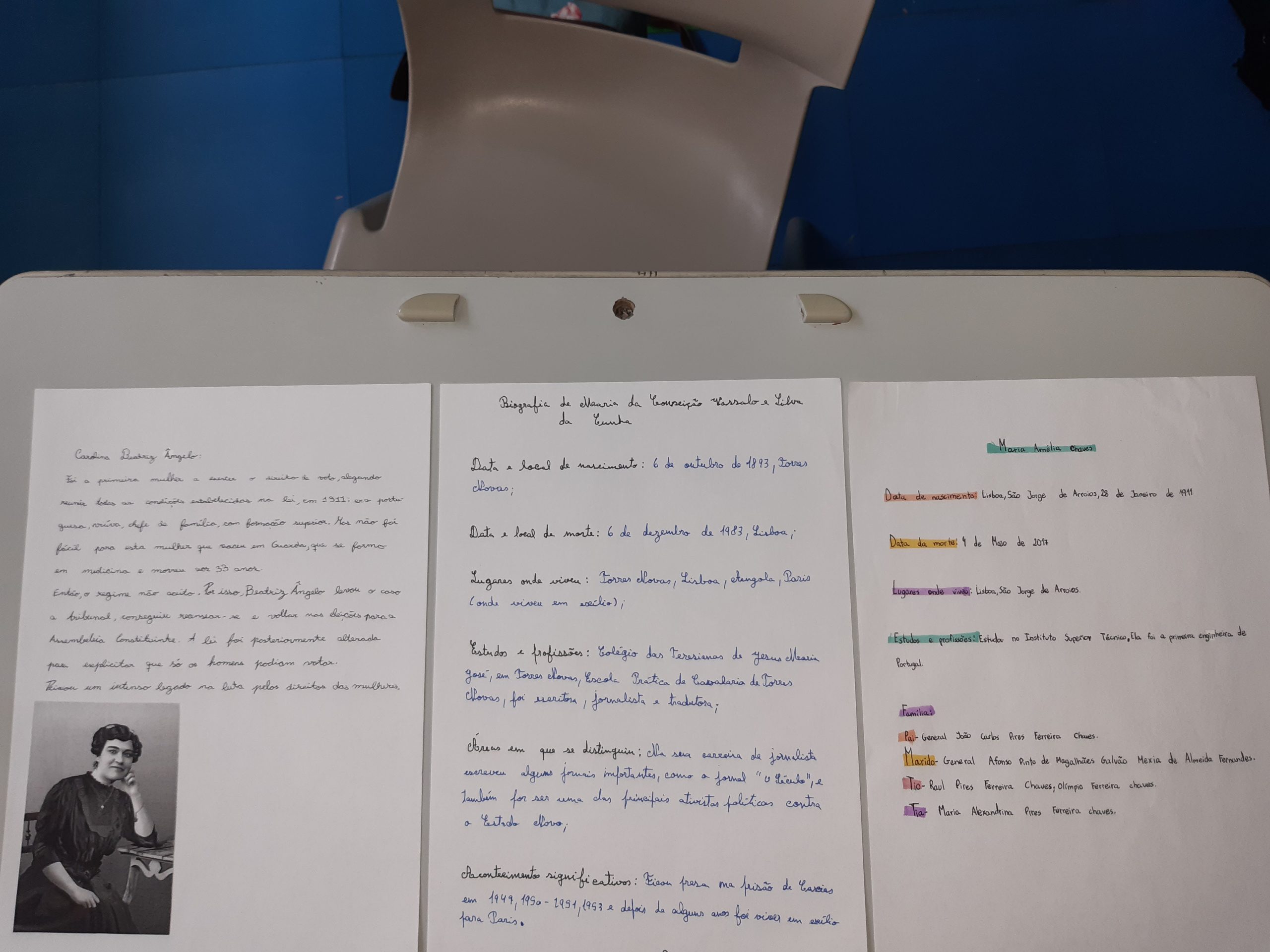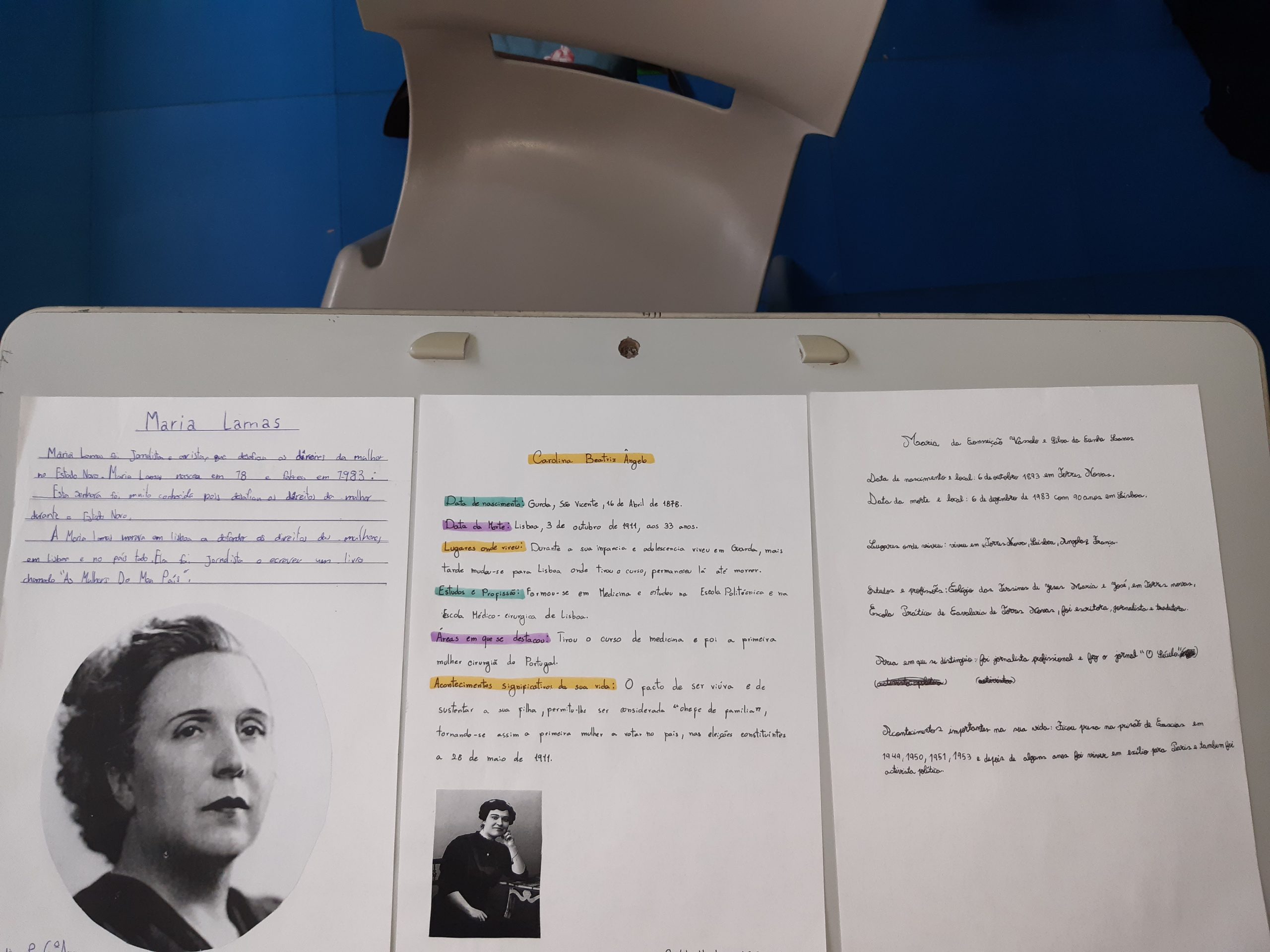 Português – Trabalho sobre as caraterísticas do texto biográfico e informativo. Realização de biografias sobre mulheres que se tenham destacado na 1ª metade do séc. XX e no Período do Estado Novo. Preparação de textos informativos para a disciplina de HGP.