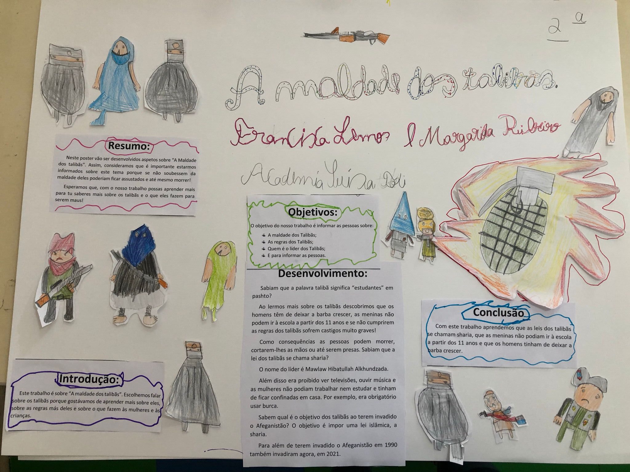 Começámos por relembrar as regras de sala, realçar e reconhecer a importância do diálogo, da negociação e do compromisso na resolução pacífica de situações de conflito. Fizemos um compromisso de turma em relação ao cumprimento das regras de sala de aula e criámos o placar “Aluno 5 estrelas”, em que para ser um aluno 5 estrelas preciso de ganhar as estrelas do/a: respeito, empenho, responsabilidade e organização, resiliência e cooperação. Fizemos uma revisão dos meses e dias da semana e organizámos o 1.º período, construindo: separados para o dossiê de 2.º ano; calendário do mês de setembro e outubro; e mapa de distribuição semanal das diferentes disciplinas – o horário de 2.º ano. Ao analisarmos como é a nossa escola e como são as escolas pelo mundo fora, descobrimos que há grandes diferenças ao nível dos direitos e acesso à educação. Assim, escutámos a obra “O lápis mágico de Malala” e discutimos os direitos das mulheres e das crianças à educação. Articulámos este tema com aquilo que aconteceu em agosto de 2021, pelo que falámos e discutimos a invasão dos talibãs ao Afeganistão. Ao nível da cooperação, partindo das temáticas mencionadas no parágrafo anterior, realizámos um trabalho de pequeno grupo e fizemos uma exposição com os produtos finais. |