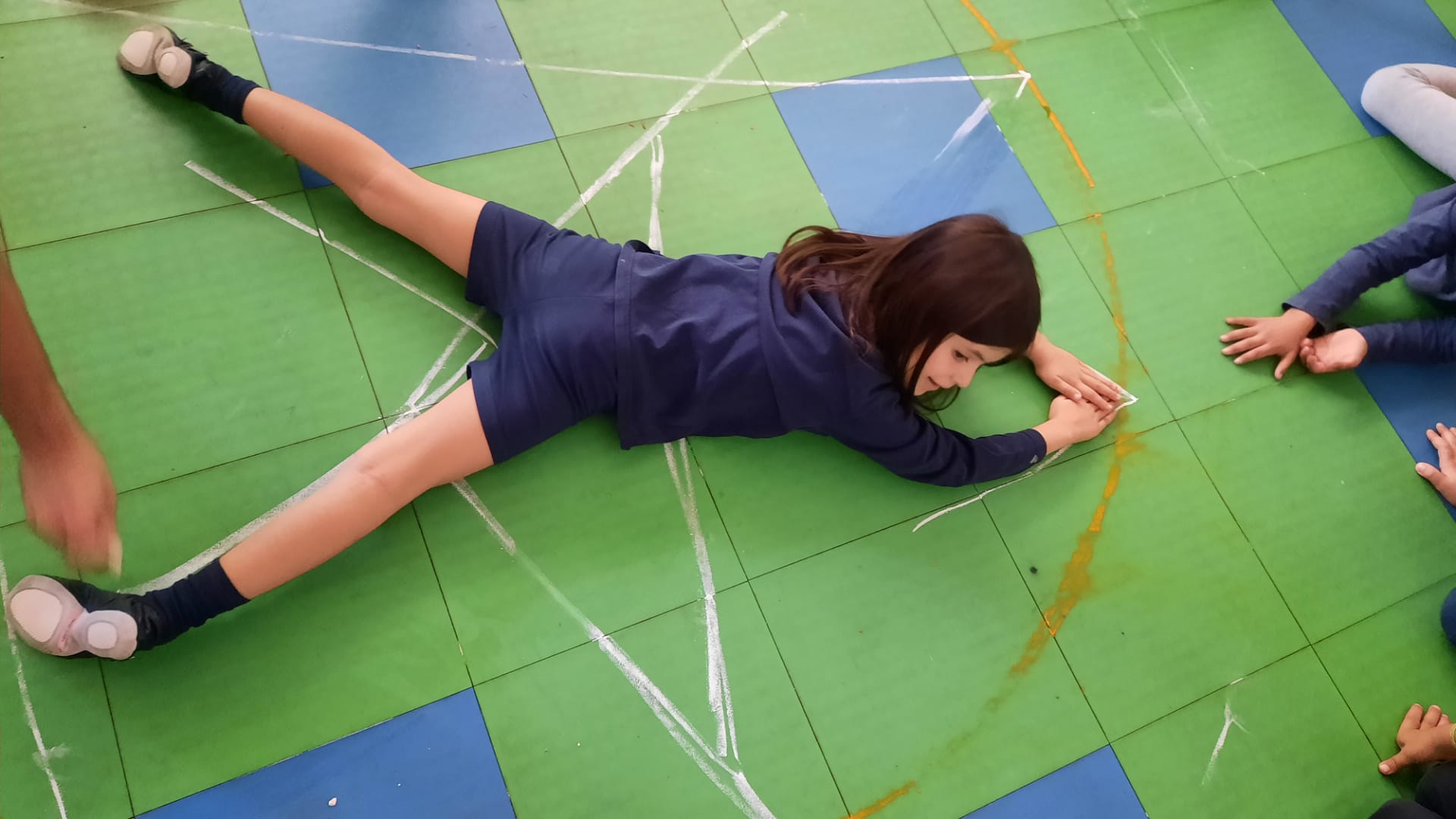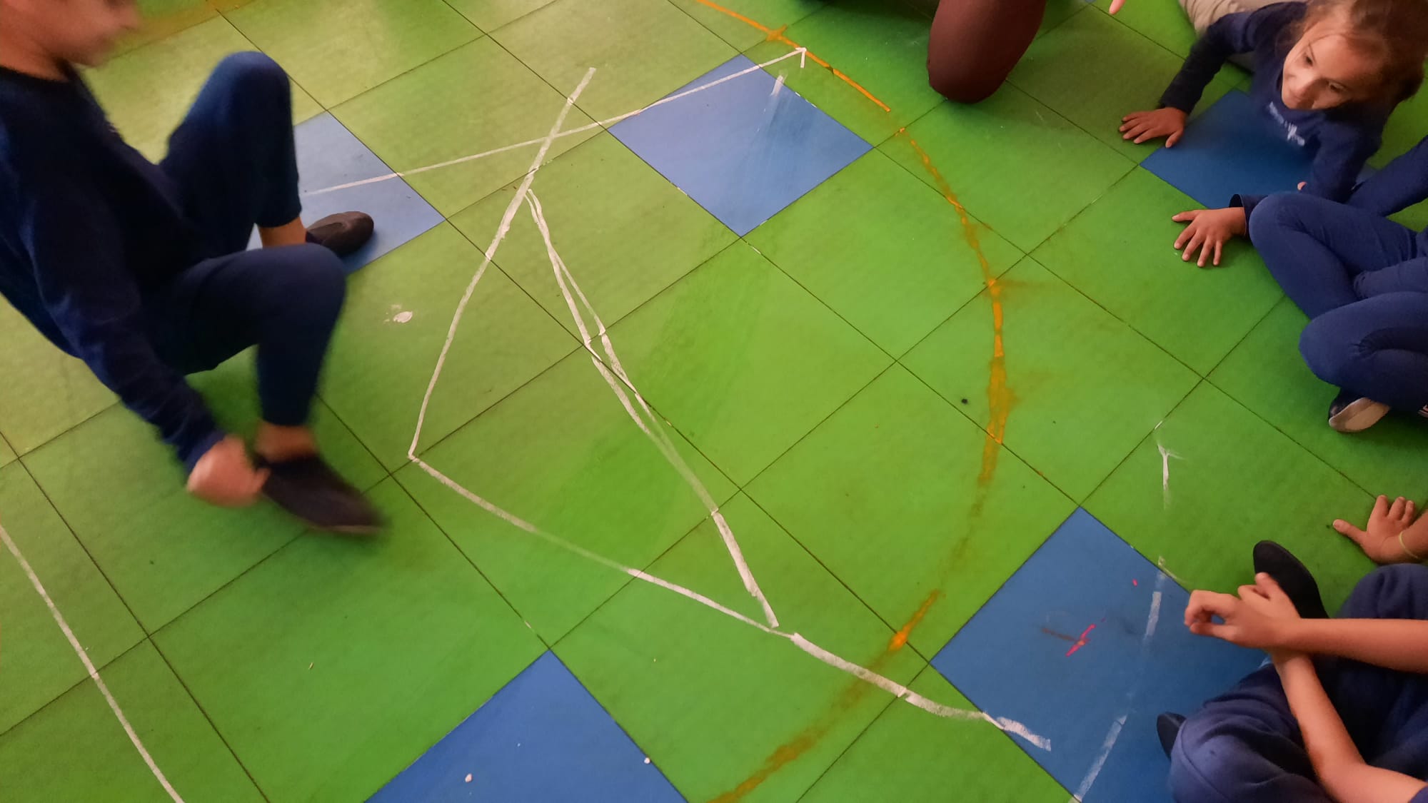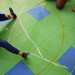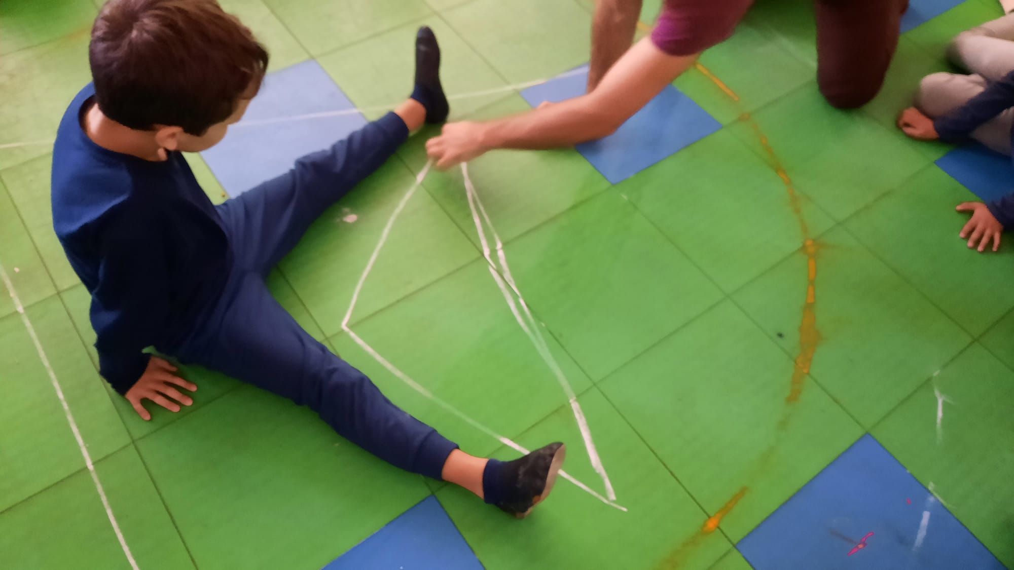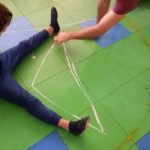 Na aula de expressão dramática/teatro corporalizar o triângulo até chegarem à letra a.