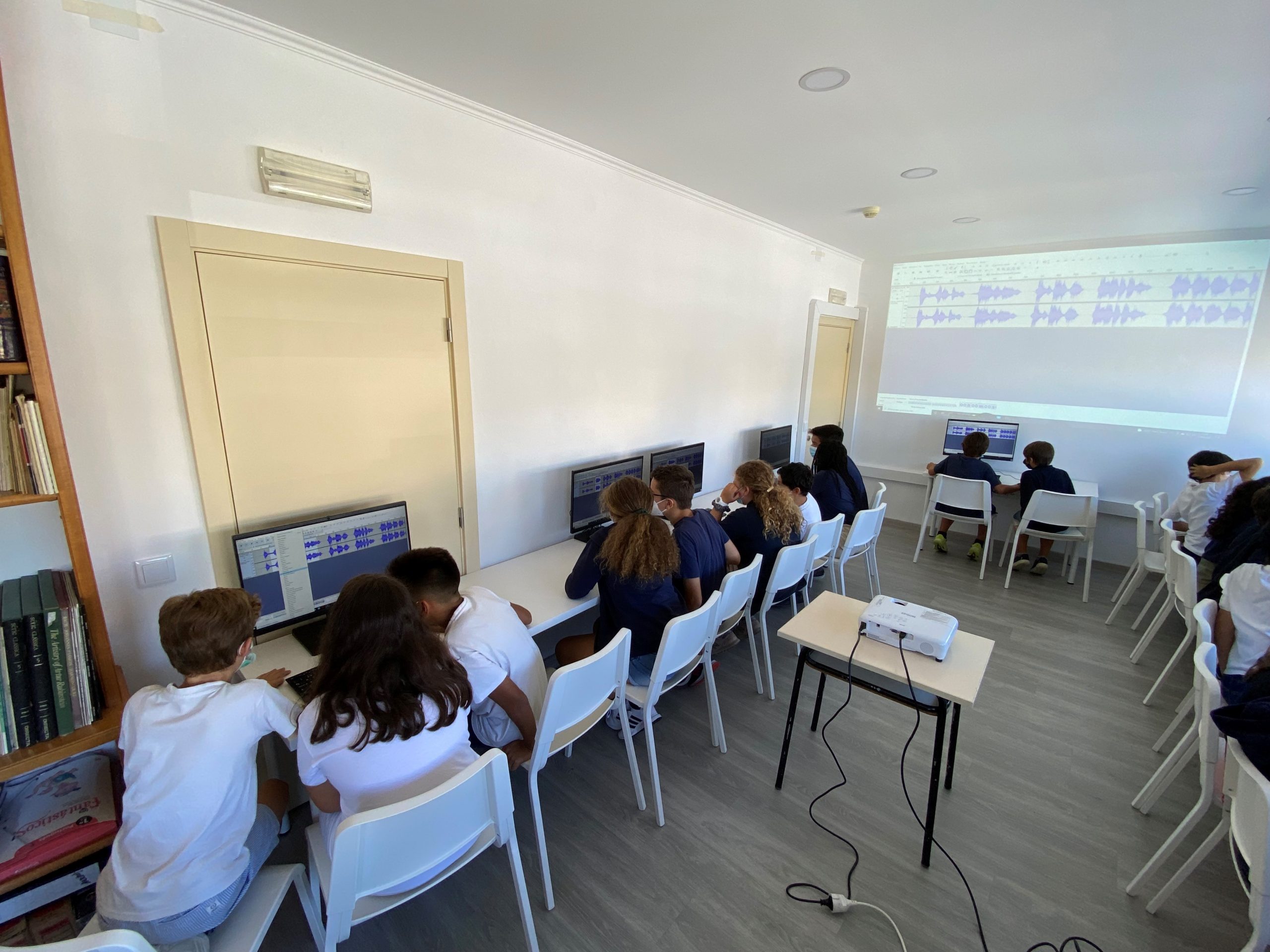 Oficina de Música – Construção de uma pequena autobiografia com aprendizagem de algumas das funções do software “audacity” como gravar, recortar, copiar, colar e aplicar efeitos (como alterar tom, velocidade, fade in e fade out, entre outros). Aplicação destas aprendizagens na autobiografia construída.