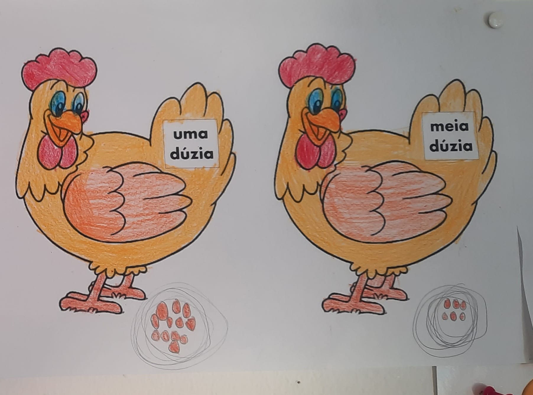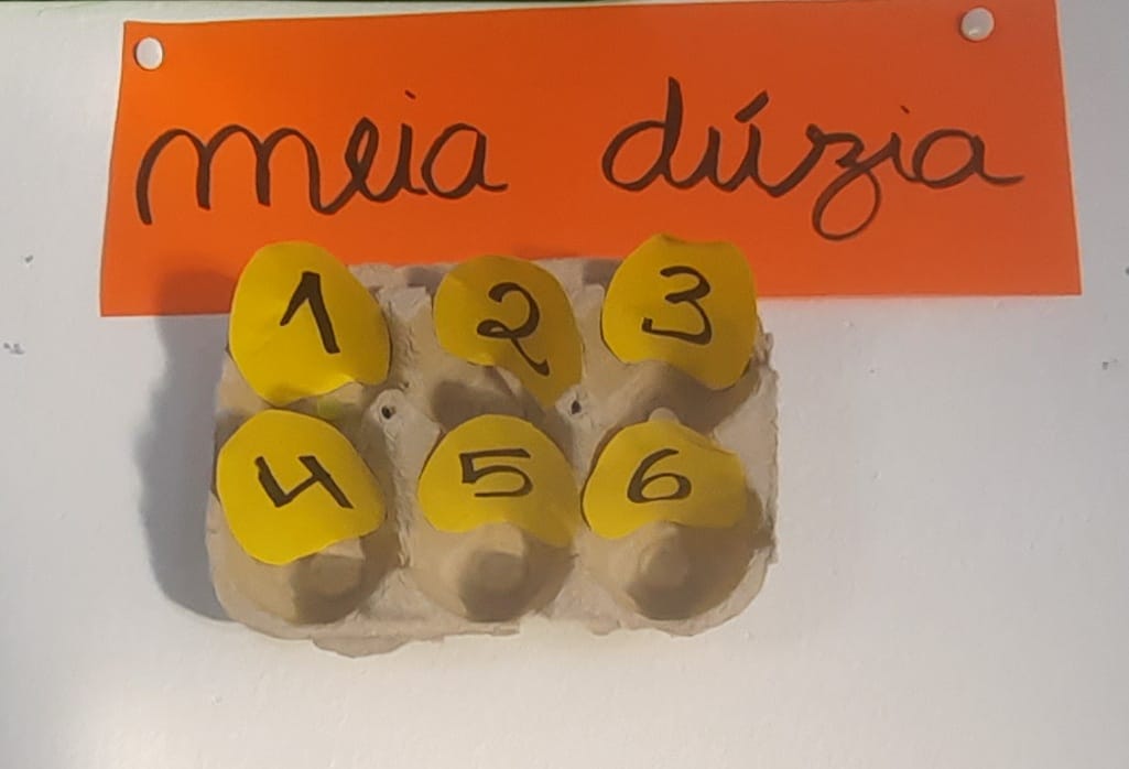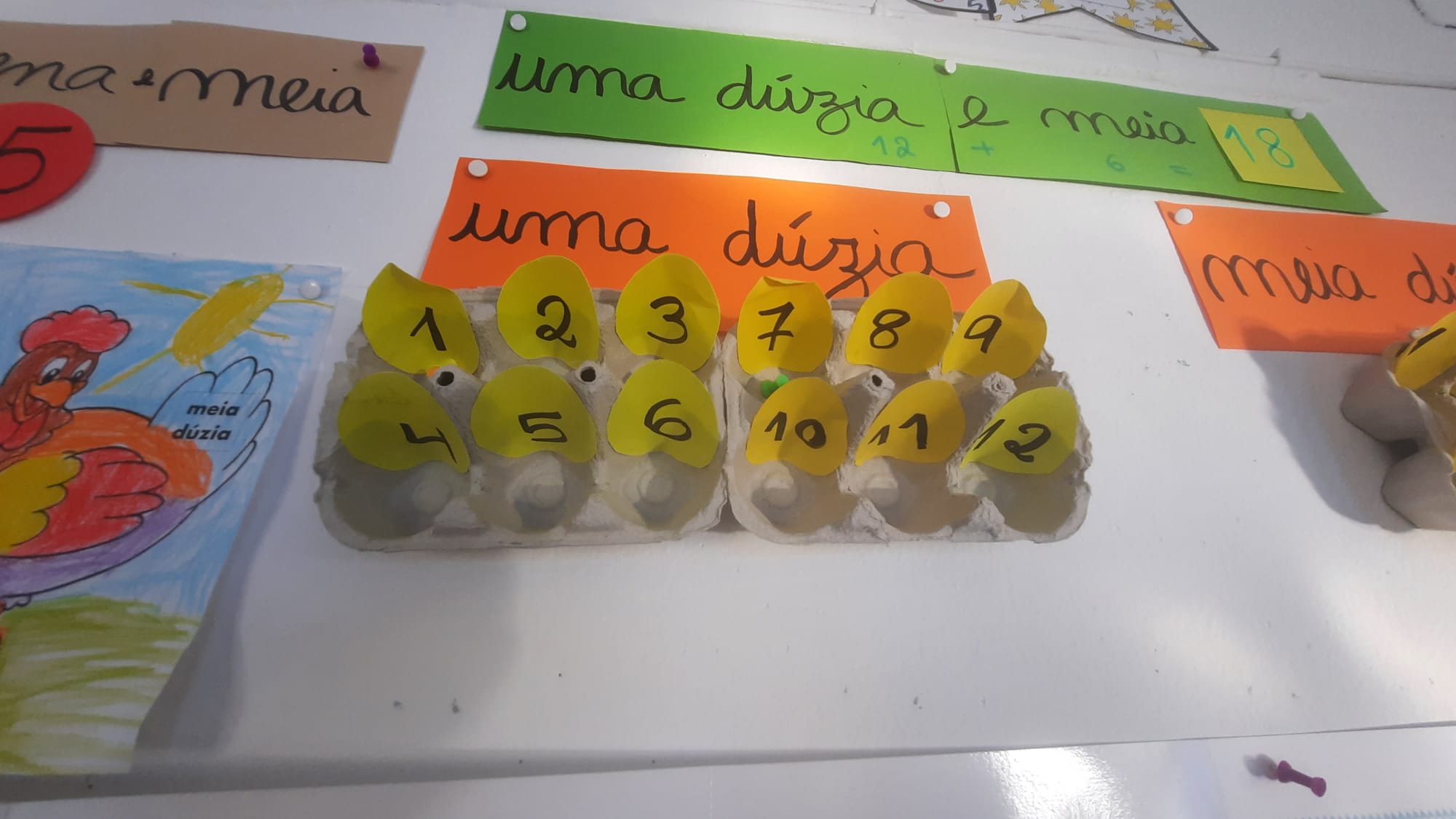 Na matemática descobrimos a meia dezena e a meia dúzia. Revimos os amigos do 10 .  E calculámos com a ajuda da moldura do 10.