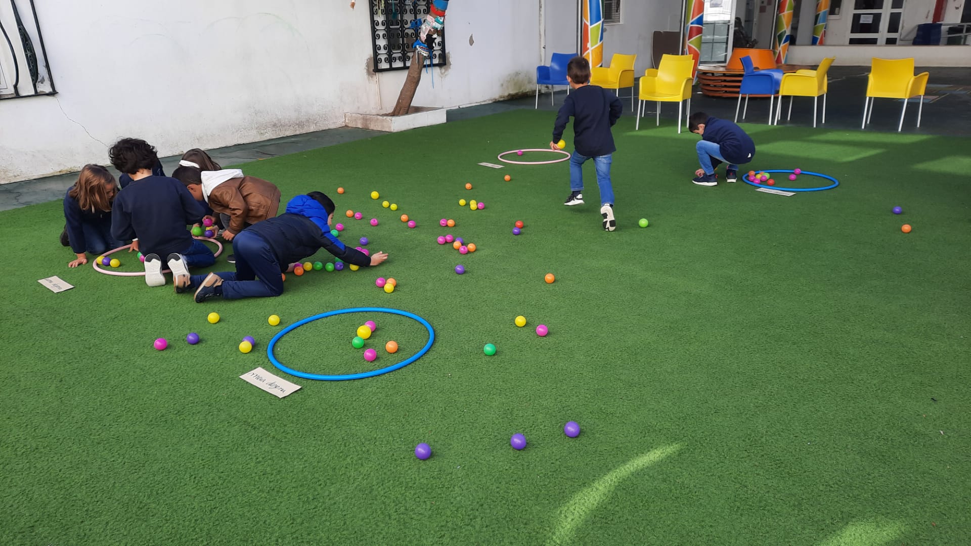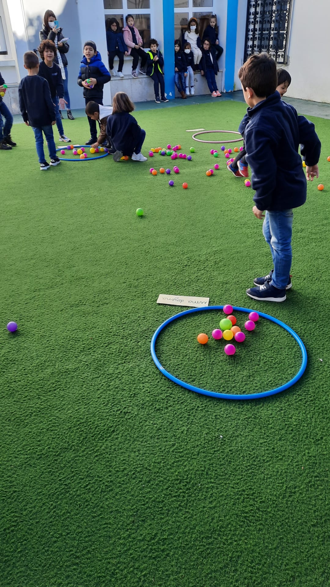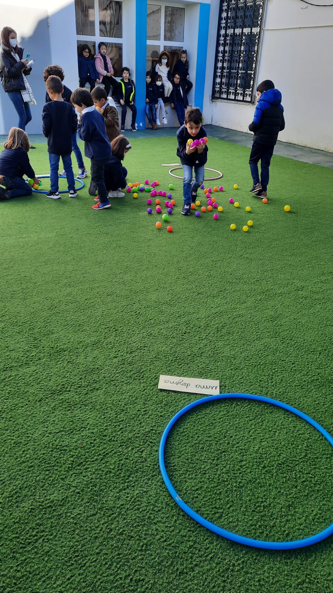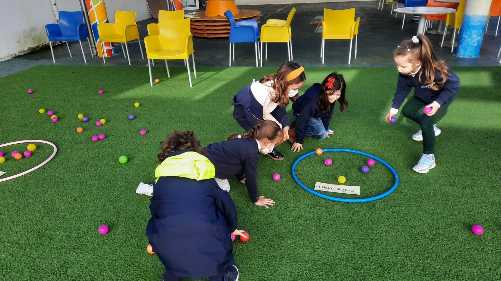 Em educação física jogámos ao “Mata Mosquito” – Jogo interativo que proporciona uma série de movimentos aleatórios e estimula a velocidade de reação.