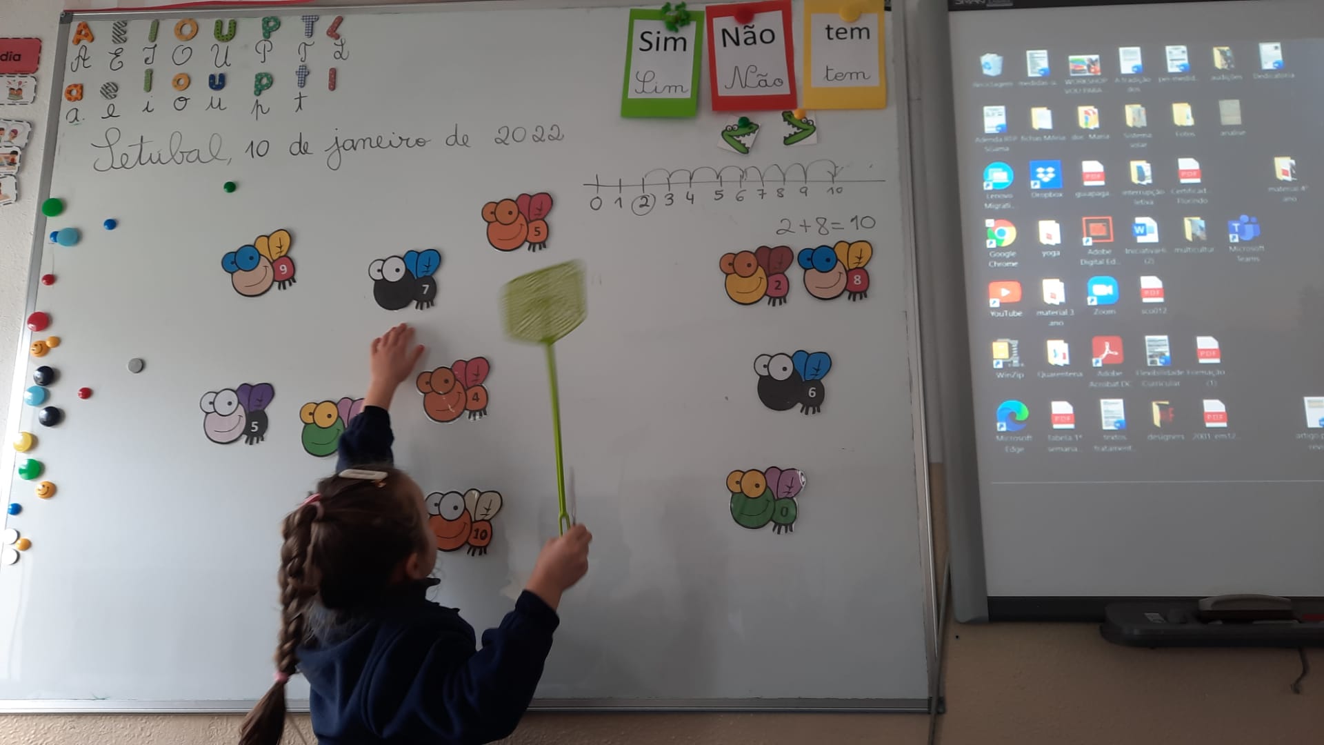 Em TIC exploraram a aplicação wordwall realizando várias atividades sobre o m e de números até à dezena e meia.