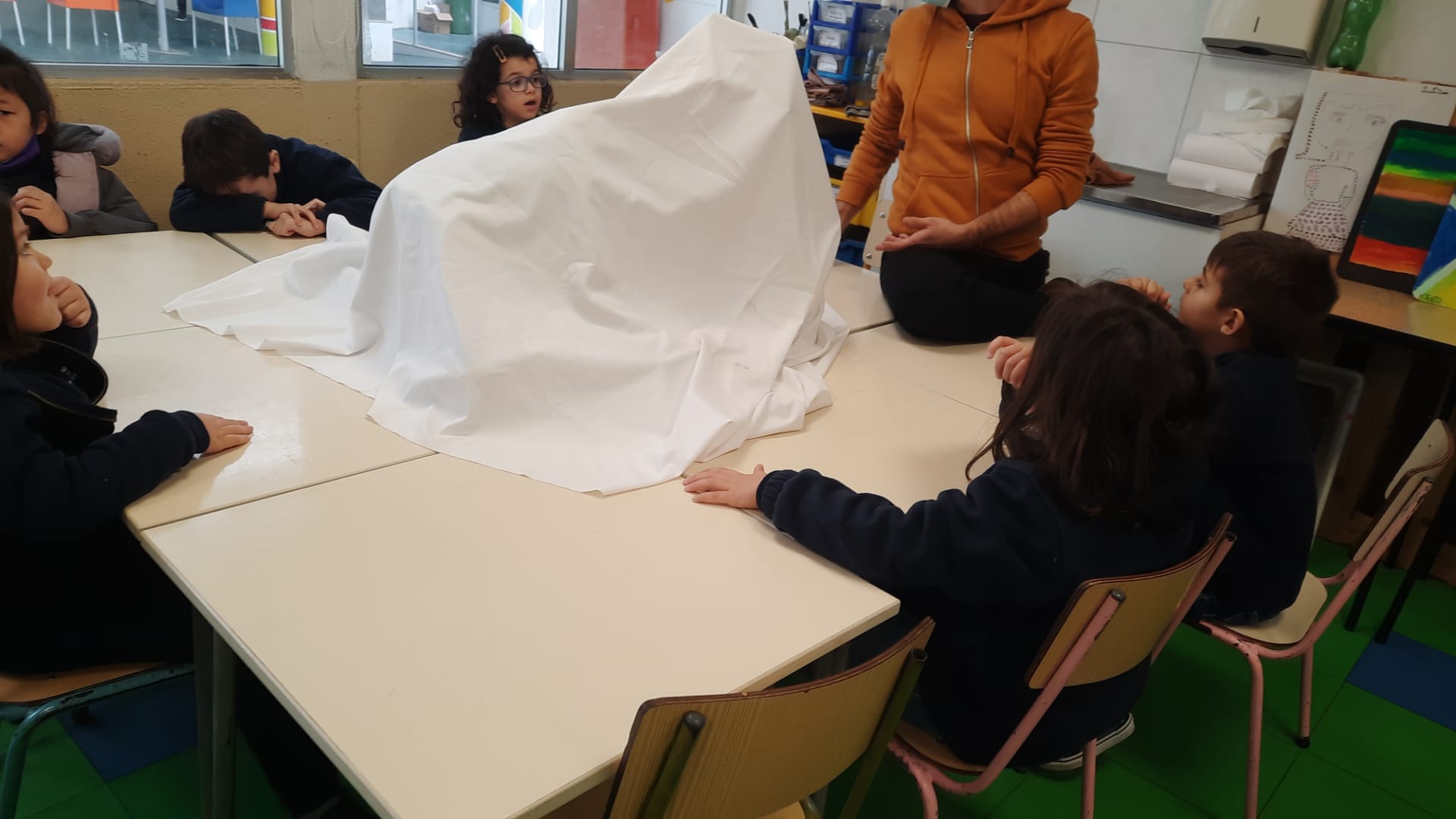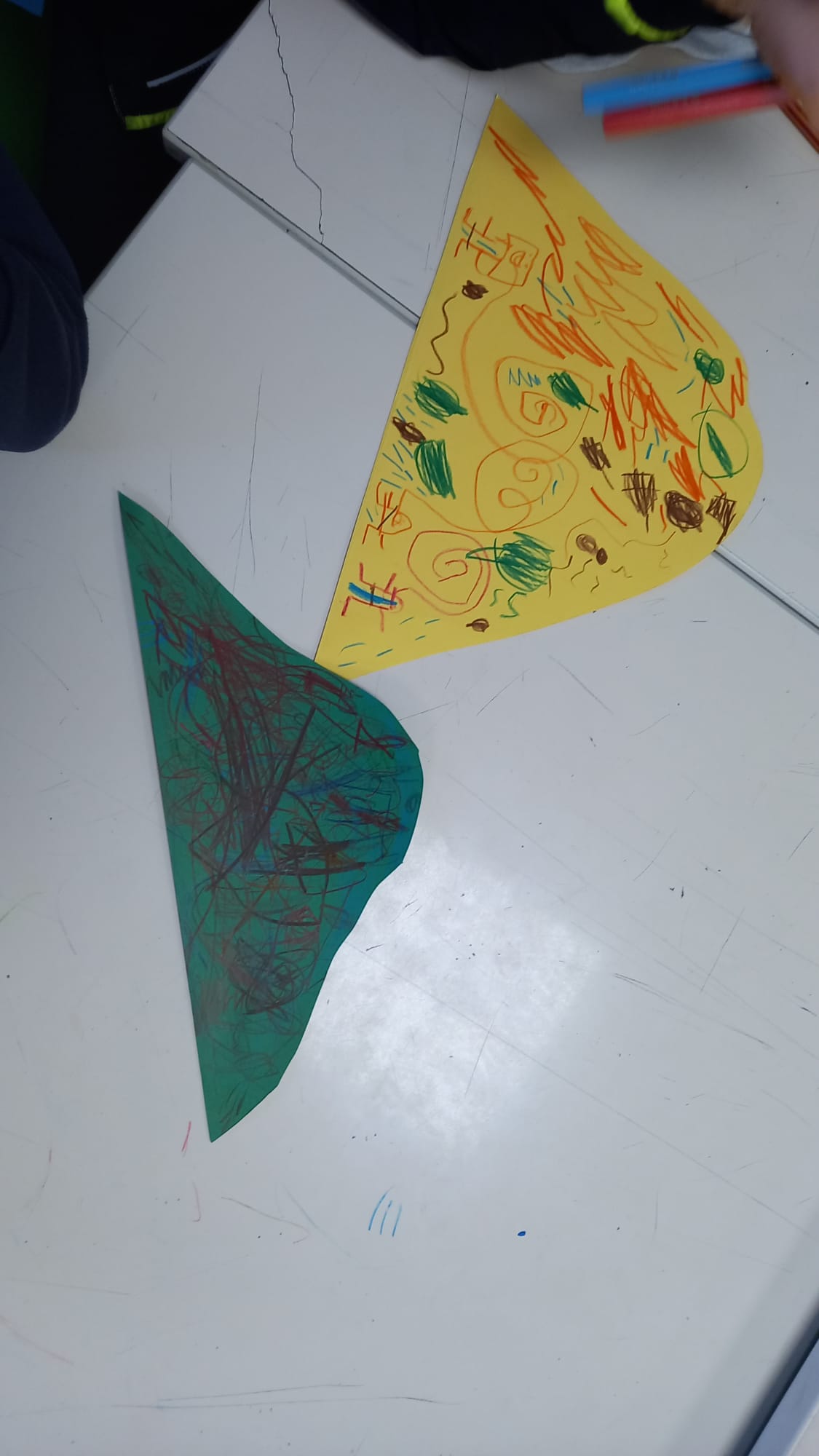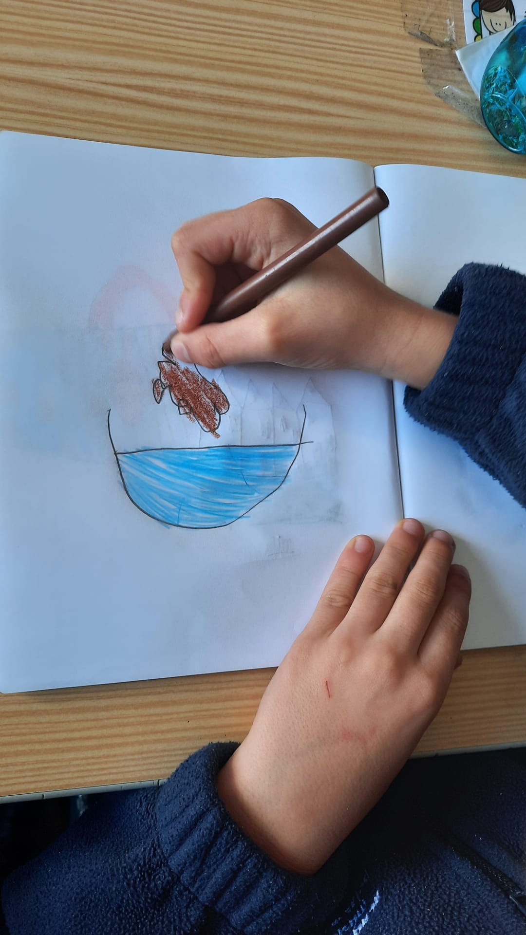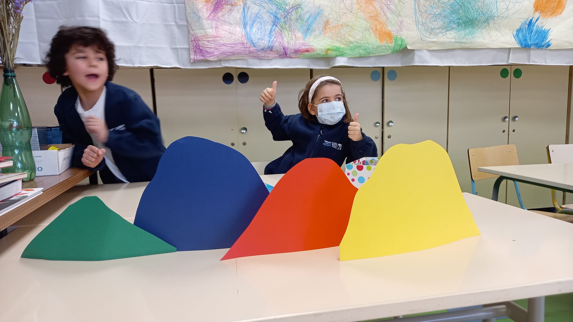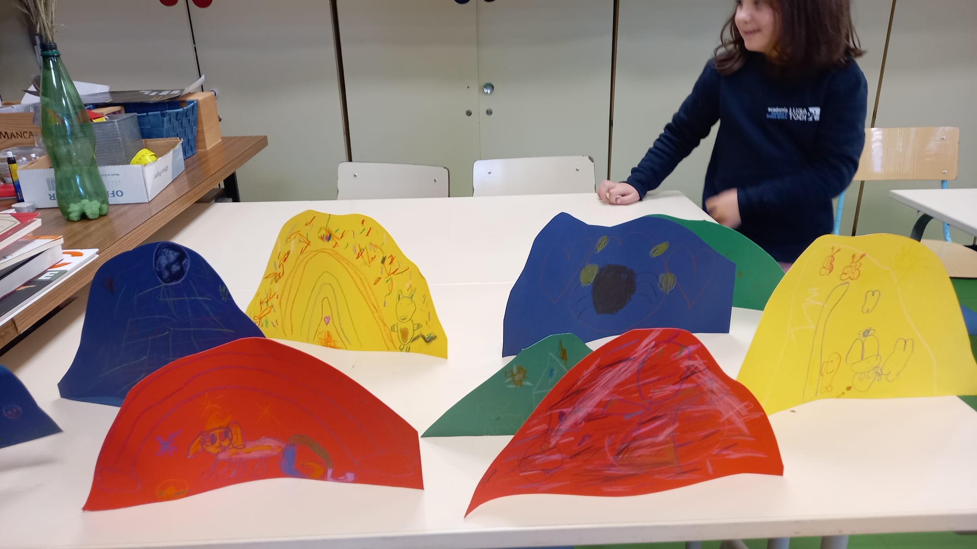Nas artes visuais o mote: “O que guarda a montanha?” foi lançado. A partir daí realizámos um exercício de estimulação sensorial. E fizemos o desenho de silhueta de montanha.