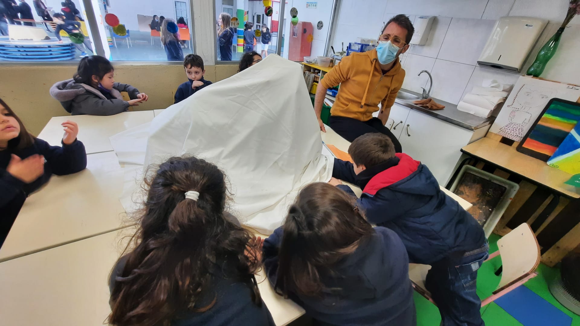 Em expressão dramática realizámos um exercício de improviso com os objetos da montanha.