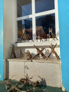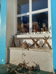 Na disciplina de Artes Visuais os alunos construíram, com materiais da natureza fortificações e trabalharam o conceito de defesa.