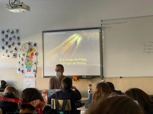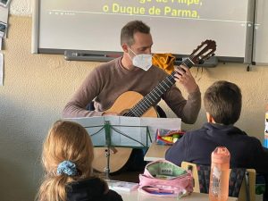 O professor Nuno Santos visitou-nos e falou-nos sobre um episódio histórico, “A armada invencível” mostrando também um excerto de um filme. Tocou também uma música de época recriando um pouco o estilo musical deste momento histórico.