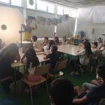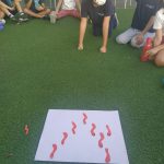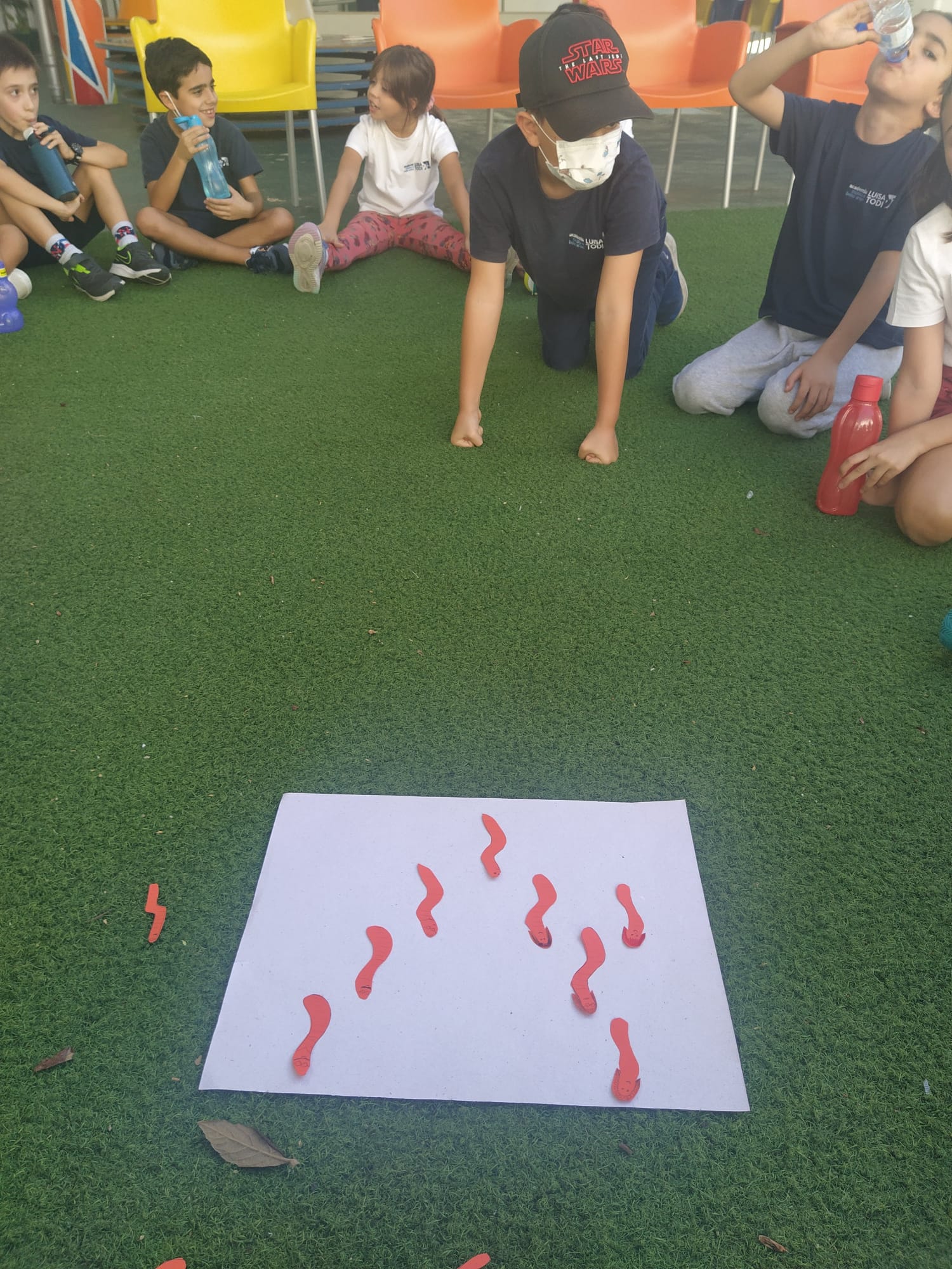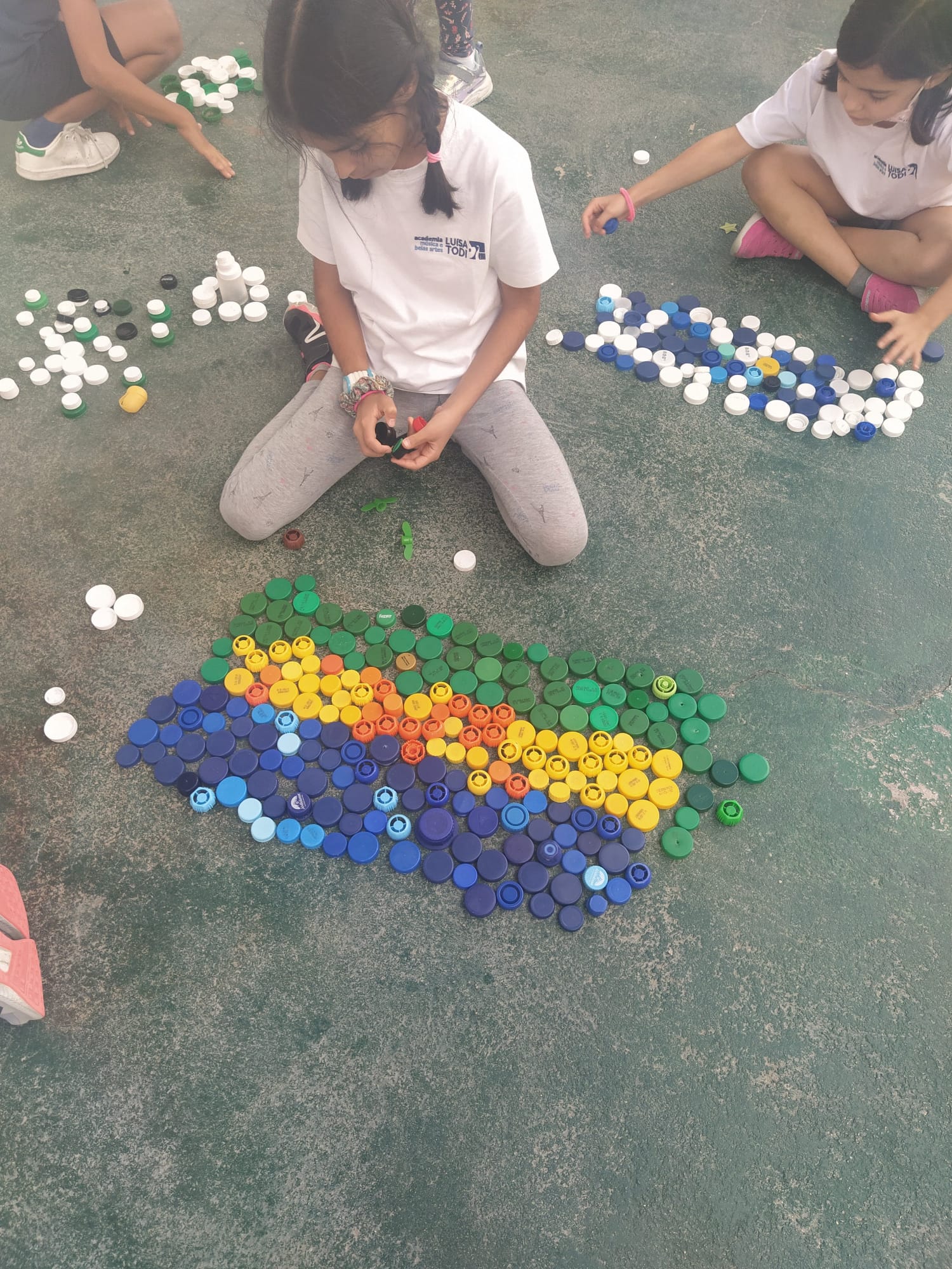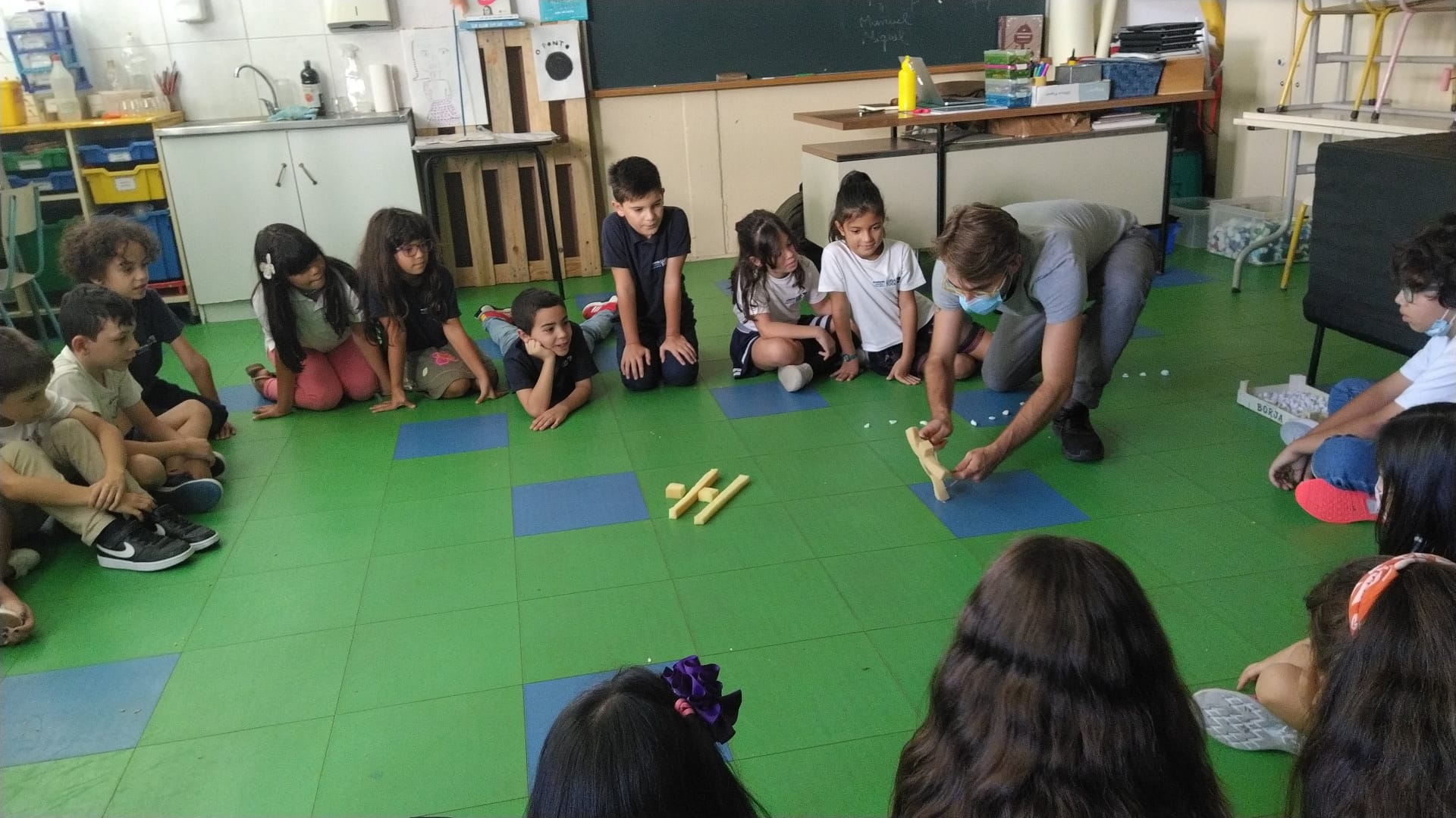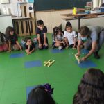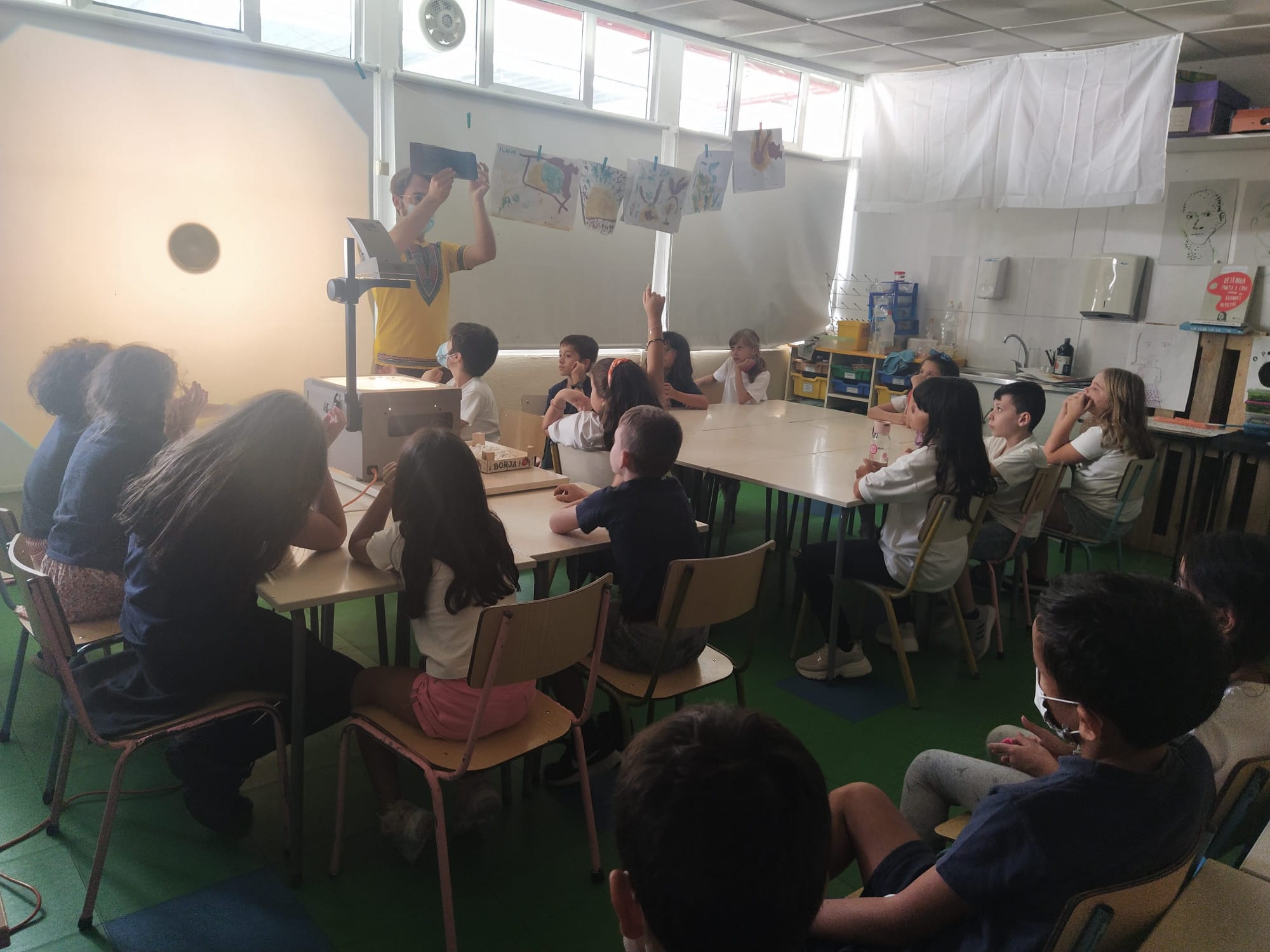 Na aula de artes visuais trabalharam a linha e o ponto, bem como as composições visuais que podem ser criadas. Em expressão dramática trabalharam a respiração consciente.
