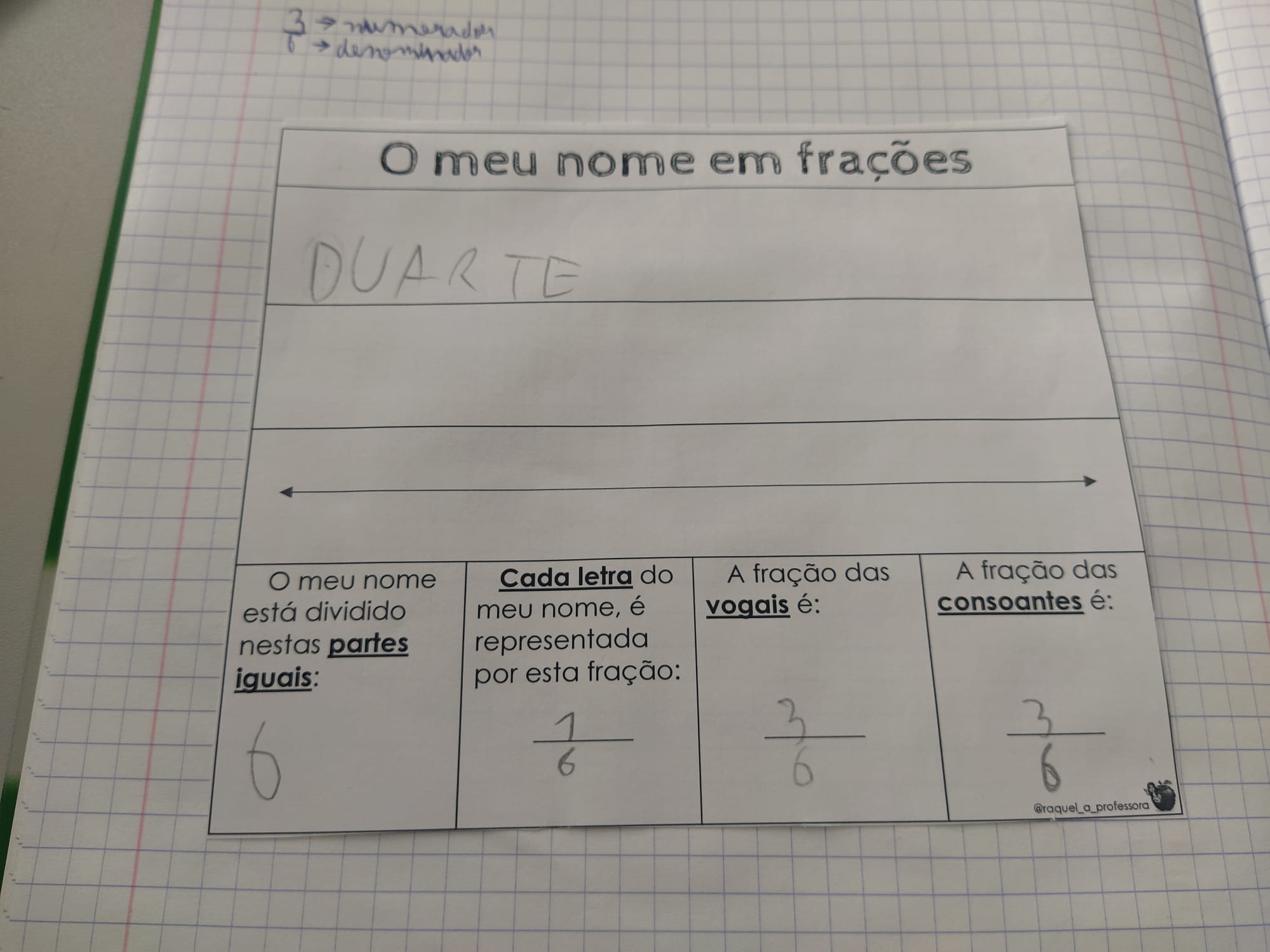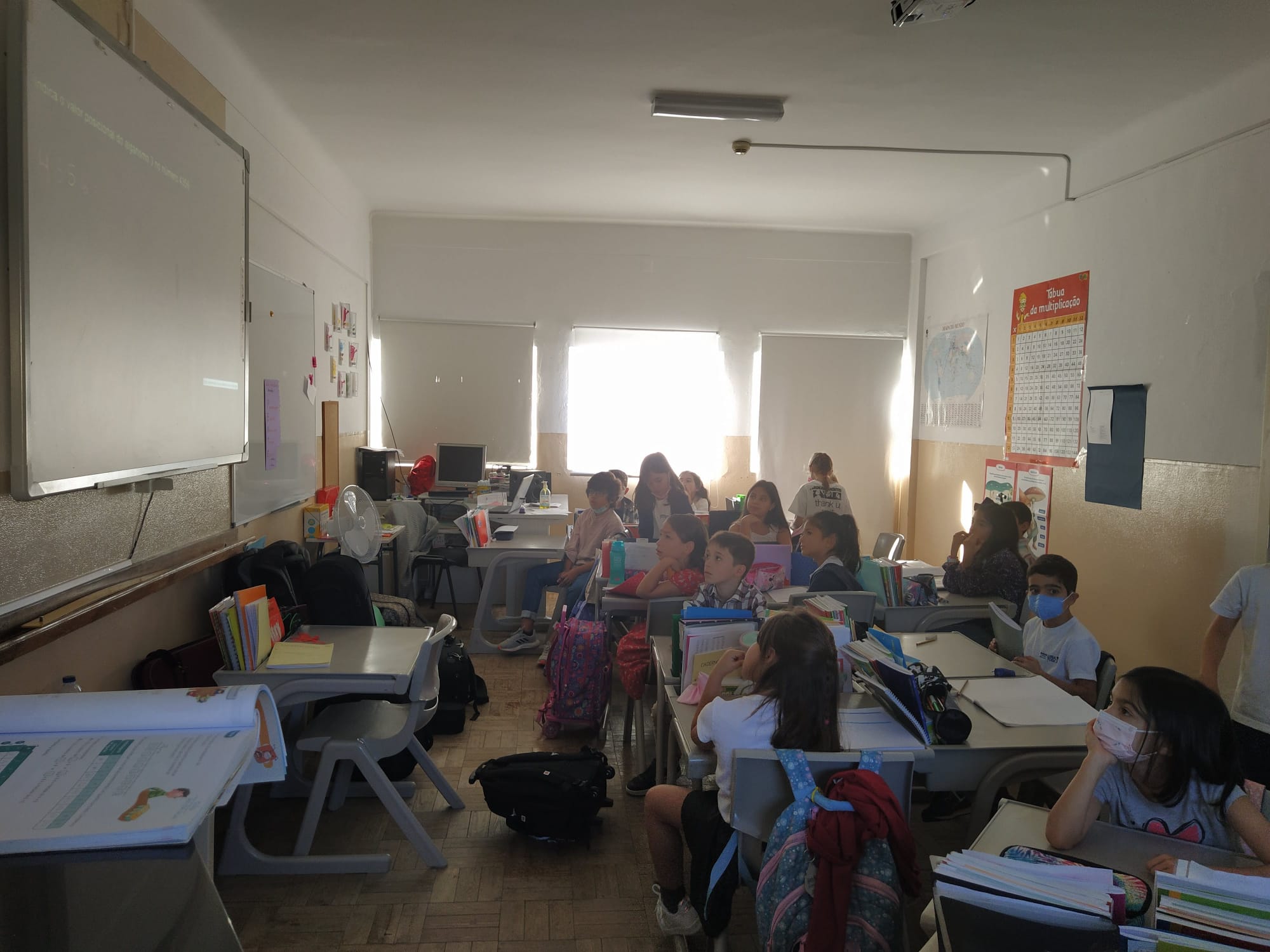 Em matemática fizeram um diagrama de caule e folhas sobre as idades, depois de analisarem os cartões de cidadão que contém as informações a que temos direito. Fizeram ainda resolução de problemas envolvendo a população de Setúbal e revendo o valor posicional dos algarismos. Através do próprio nome reviram as frações, dividindo o seu nome em partes iguais.