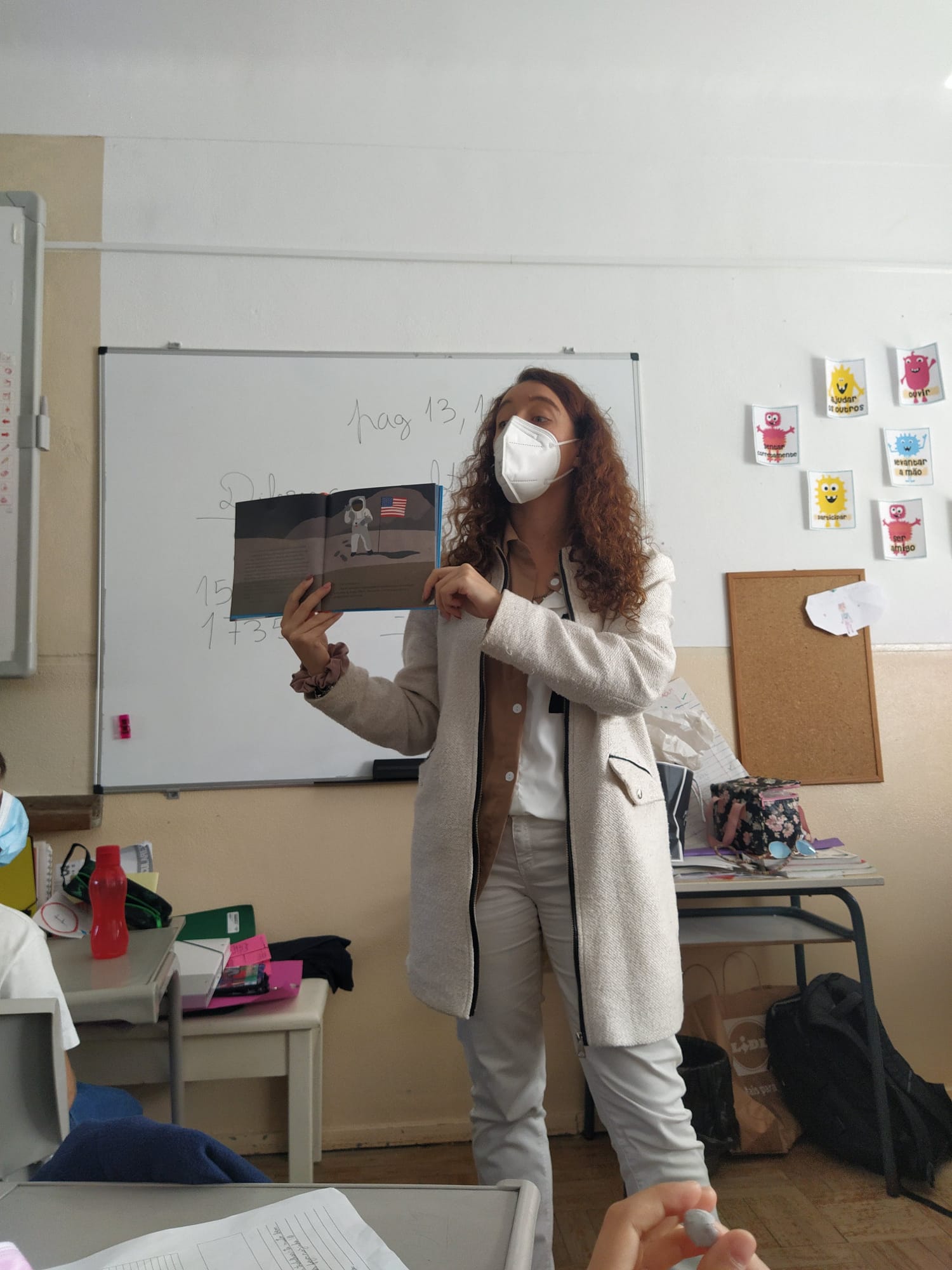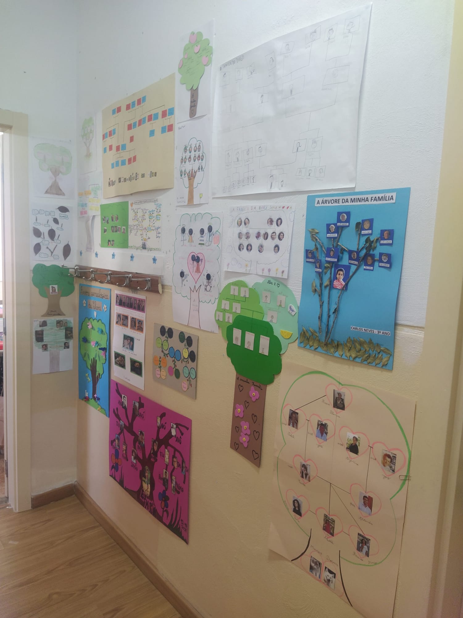 Em português, investigou-se sobre as famílias de palavras e continuou-se o estudo sobre os nomes próprios e comuns. Foi, ainda, feita uma entrevista às famílias sobre acontecimentos importantes para a construção de uma linha do tempo.