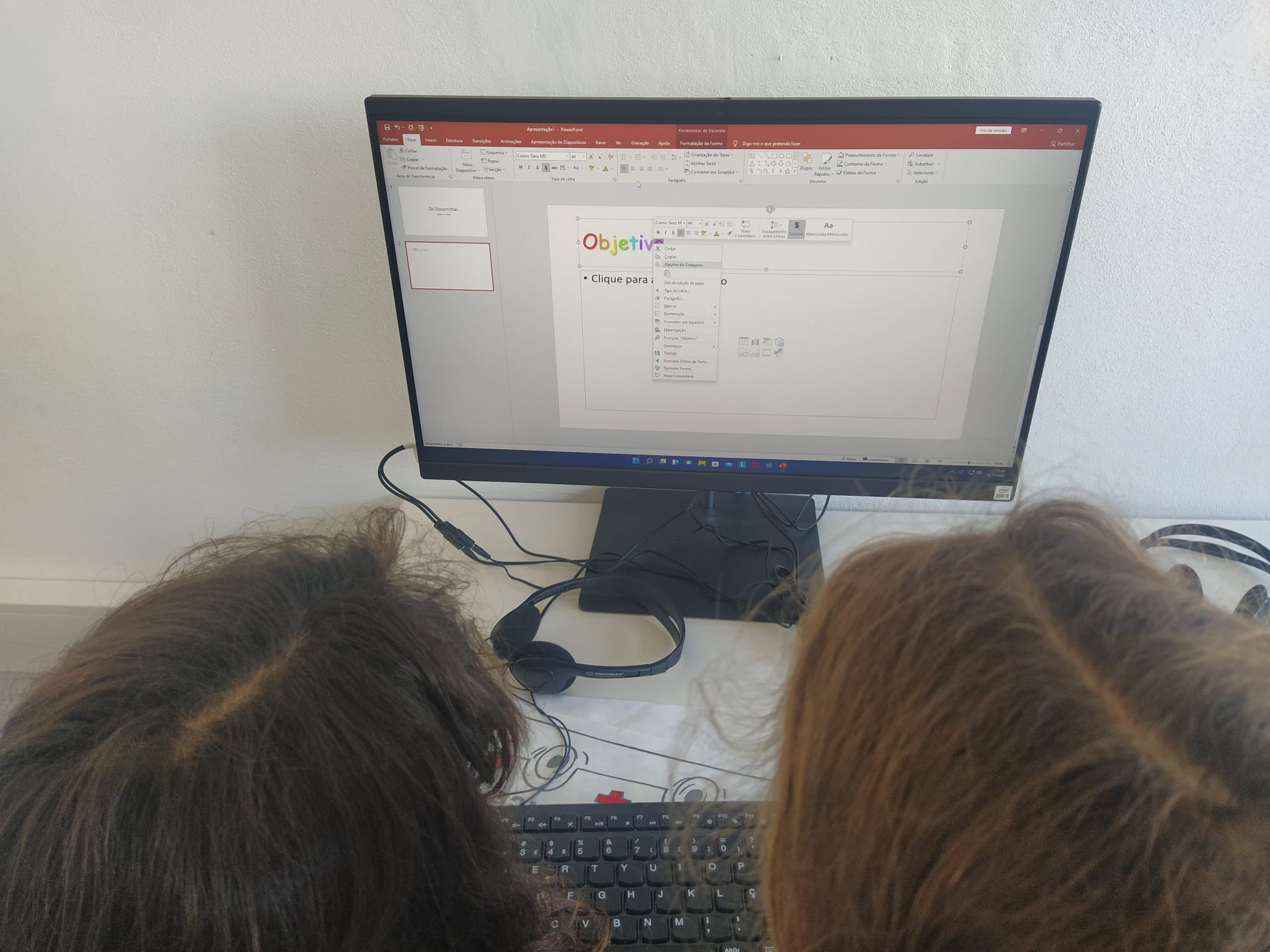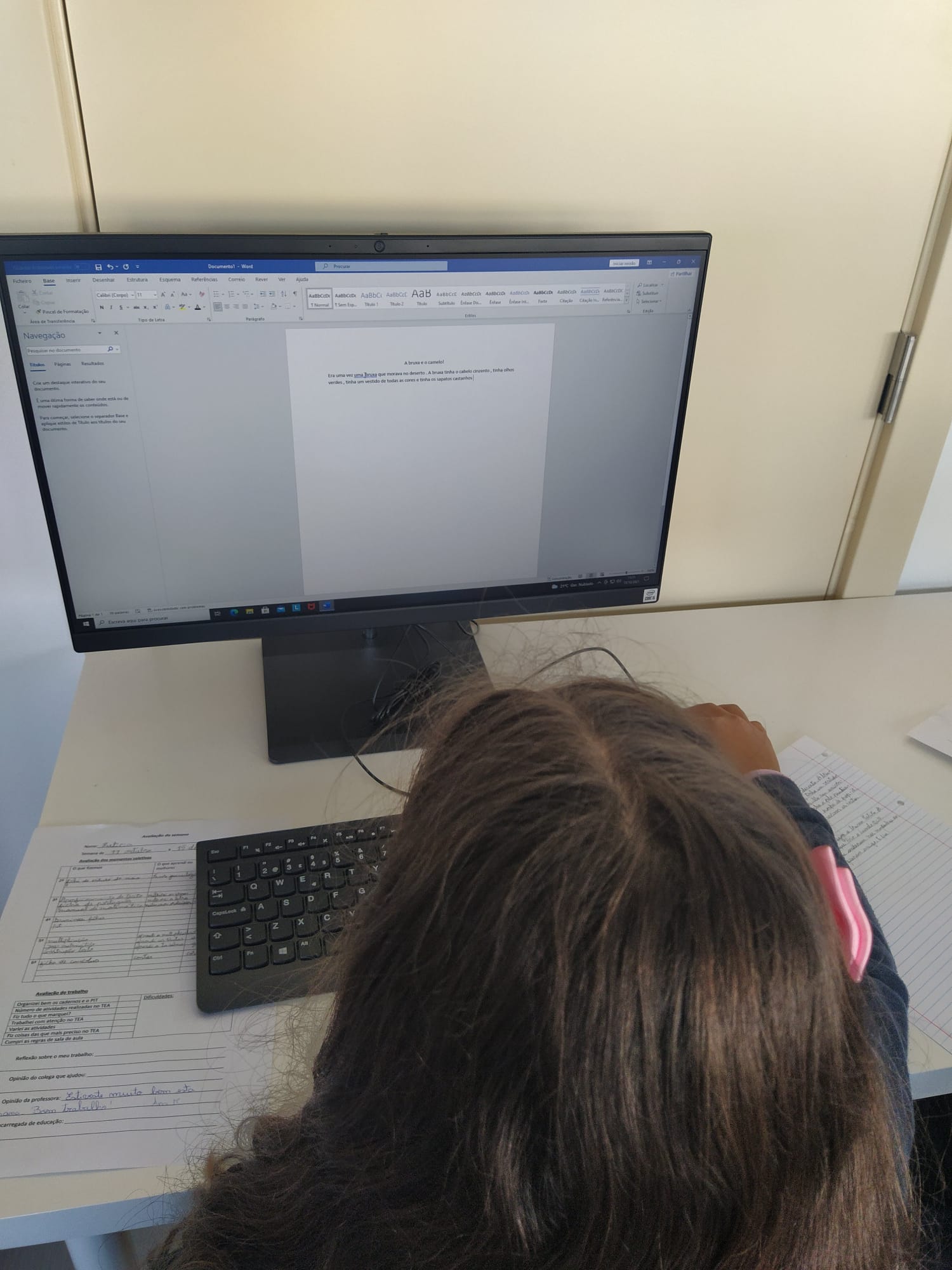 Na aula de informática elaboraram um texto com vários elementos que trouxeram de casa como personagens principais.