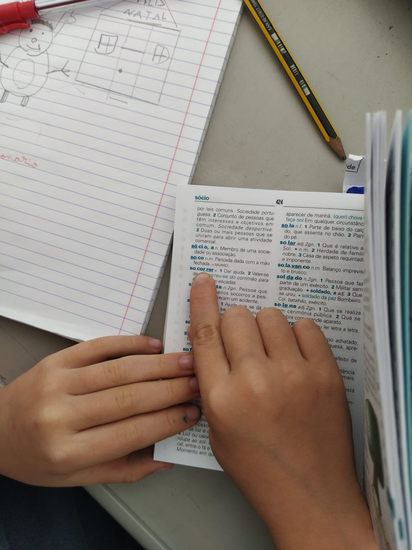 Em português, procurou-se a palavra “socorrer” no dicionário. A partir desta pesquisa entrou-se para o mundo dos verbos e dos sinónimos. Aprenderam a conjugar os verbos no presente e estudaram sobre tipos de frases e valores.