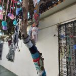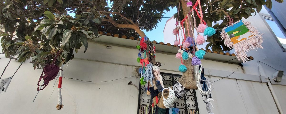 Oficina Criativa – “Tecer afetos” – Com base em histórias, construção de um tear com objetos cuja composição traduza uma memória de afetos. Colocação dessas construções na árvore do pátio.