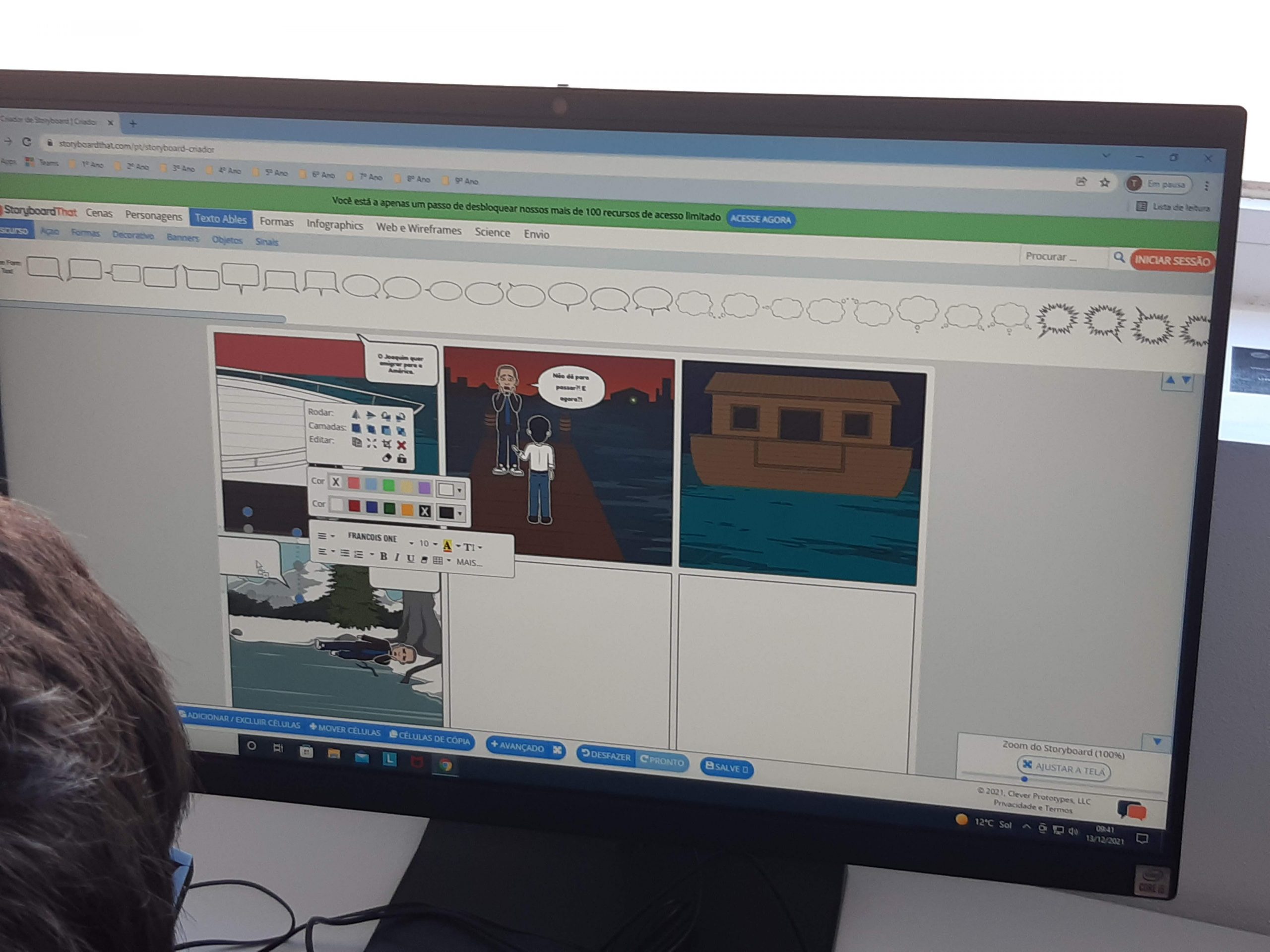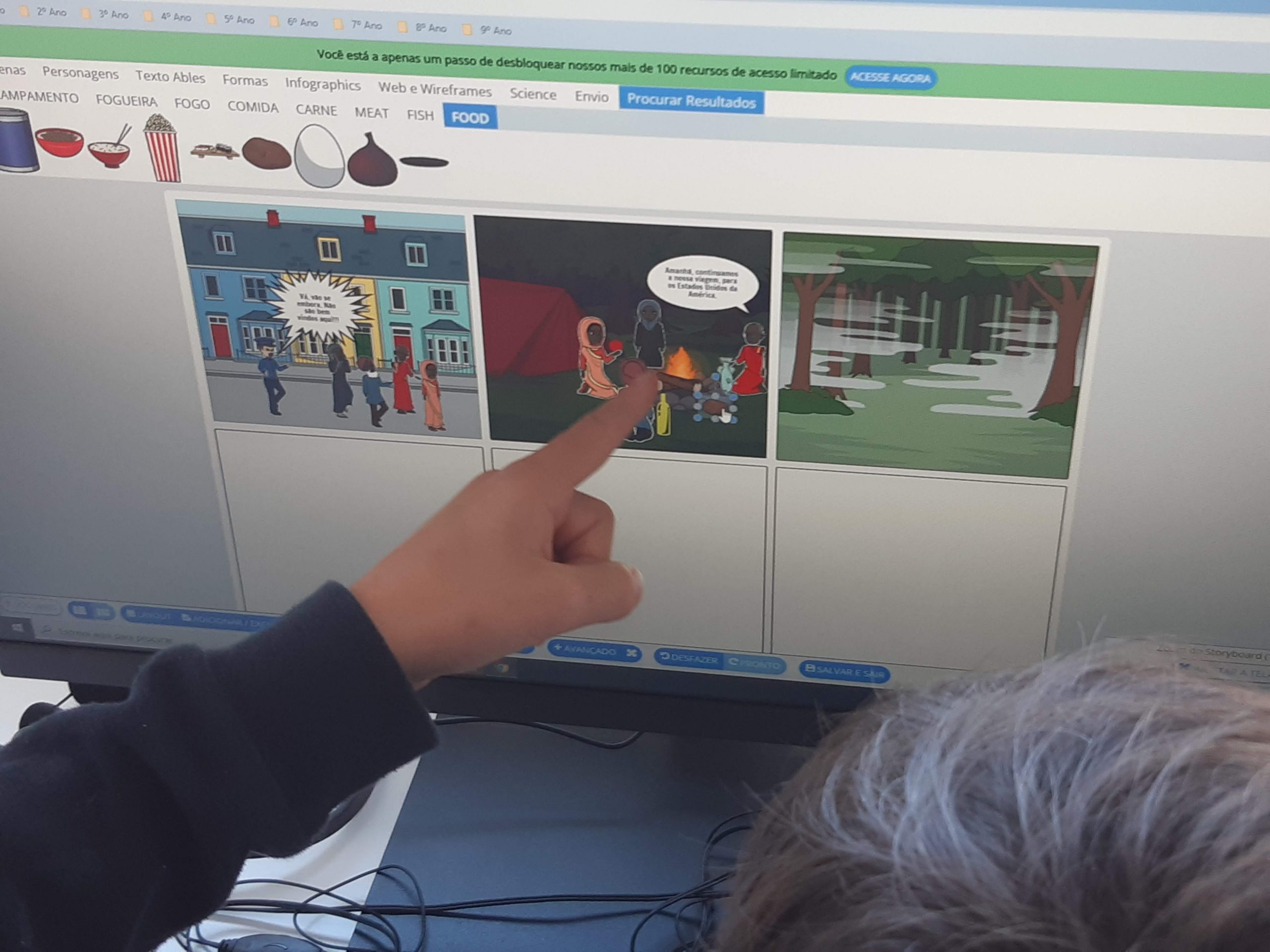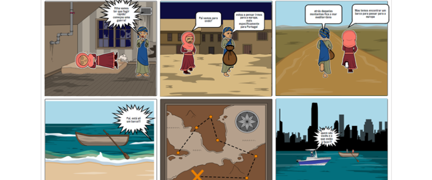 Cidadania e Desenvolvimento – Realização de bandas desenhadas na plataforma Storyboard That sobre as migrações forçadas em algumas zonas do mundo e a forma como são tratados os migrantes nos países que os recebem. As bandas desenhadas foram o resultado dos conhecimentos adquiridos e analisados nas aulas de Português e História e Geografia de Portugal. Este tema foi trabalhado no domínio “Direitos humanos”.
