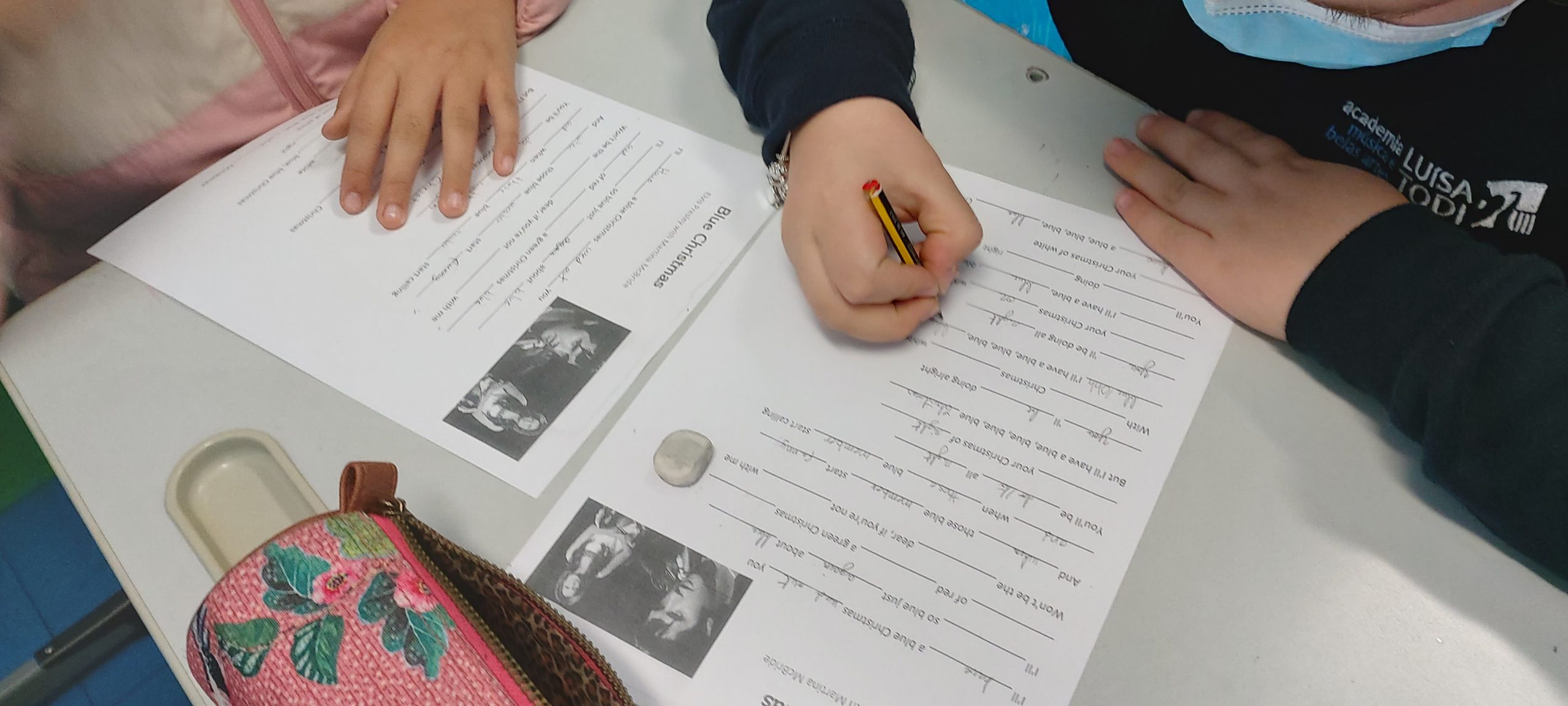 Inglês– Realização de trabalhos e exploração de vocabulário relacionado com “Christmas around the world”. Execução vocal da canção “Blue Christmas” de Elvis Presley.