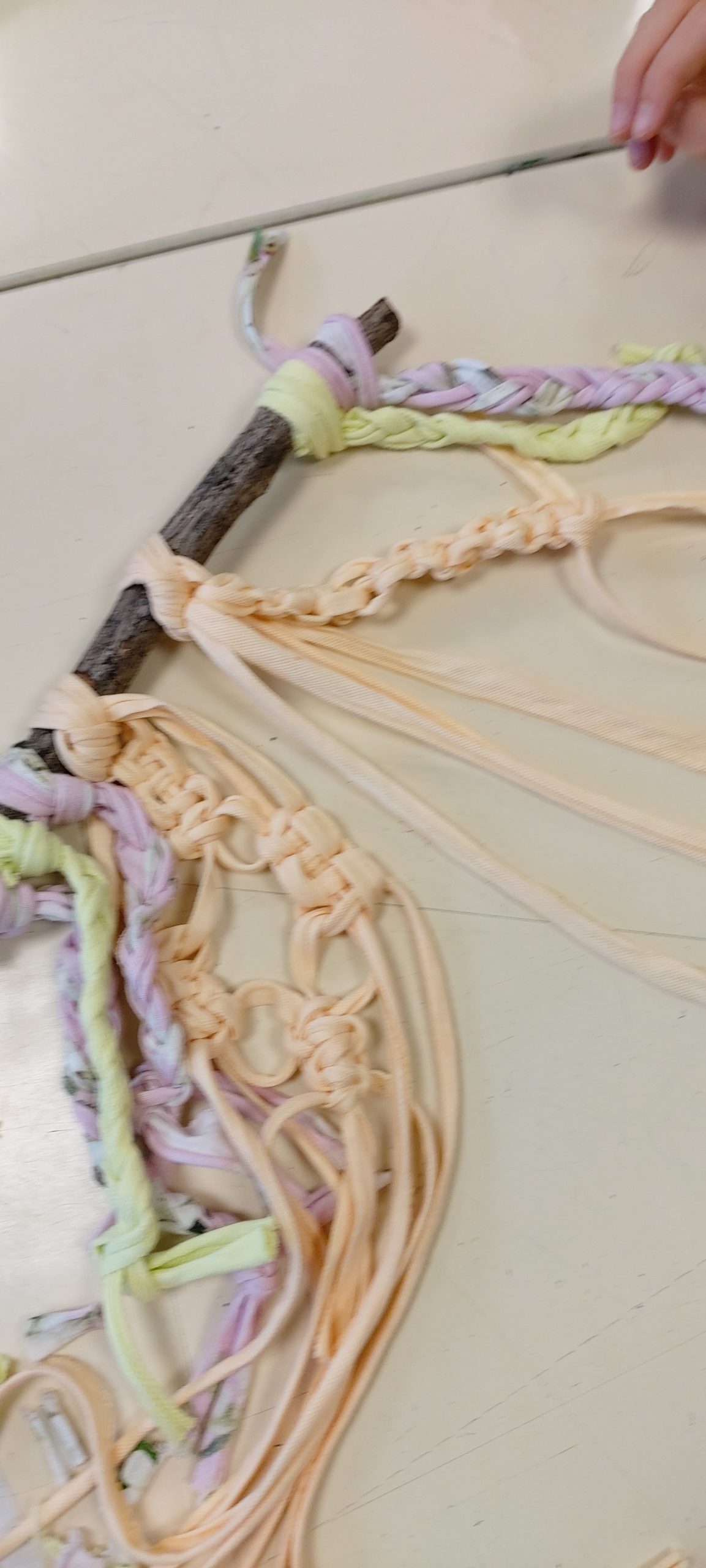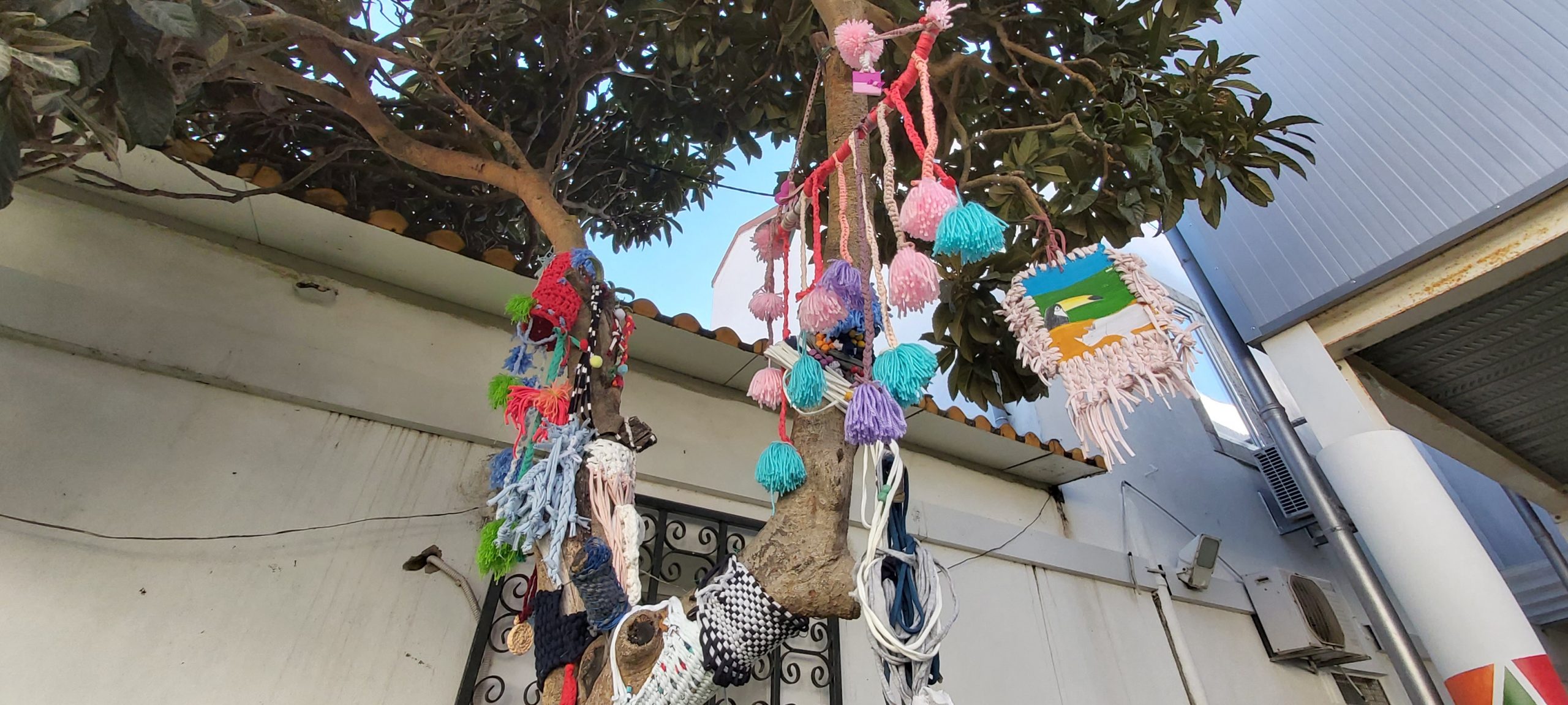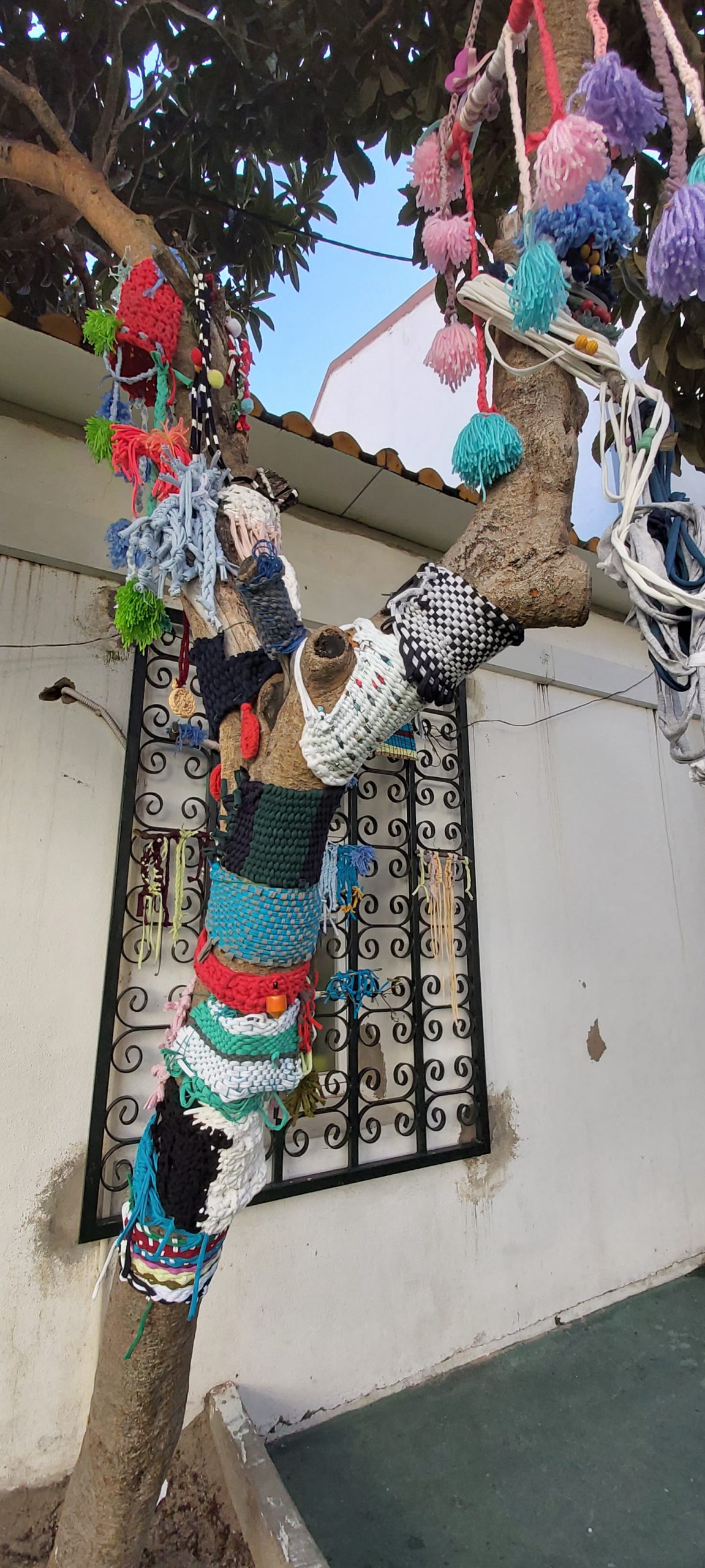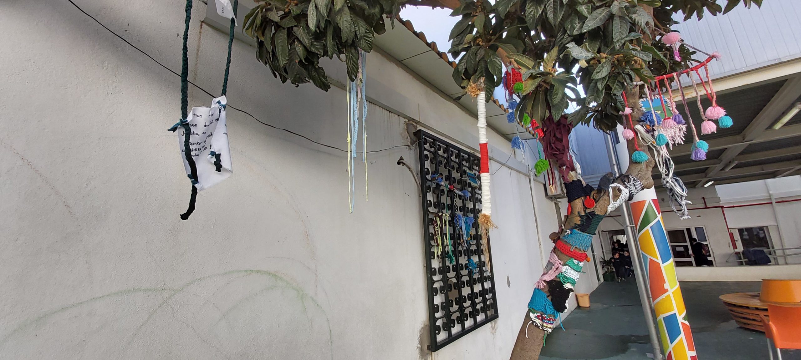 Oficina Criativa – “Tecer afetos” – Com base em histórias, construção de um tear com objetos cuja composição traduza uma memória de afetos. Colocação dessas construções na árvore do pátio.