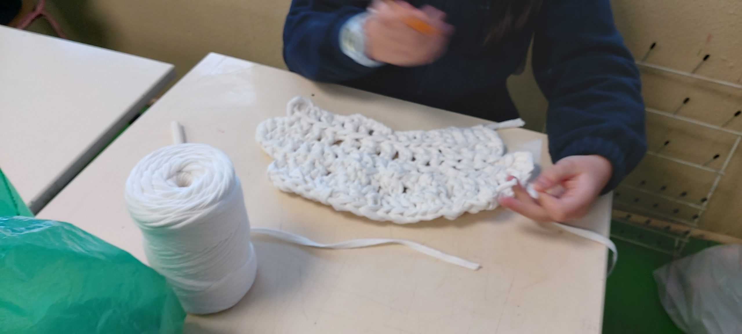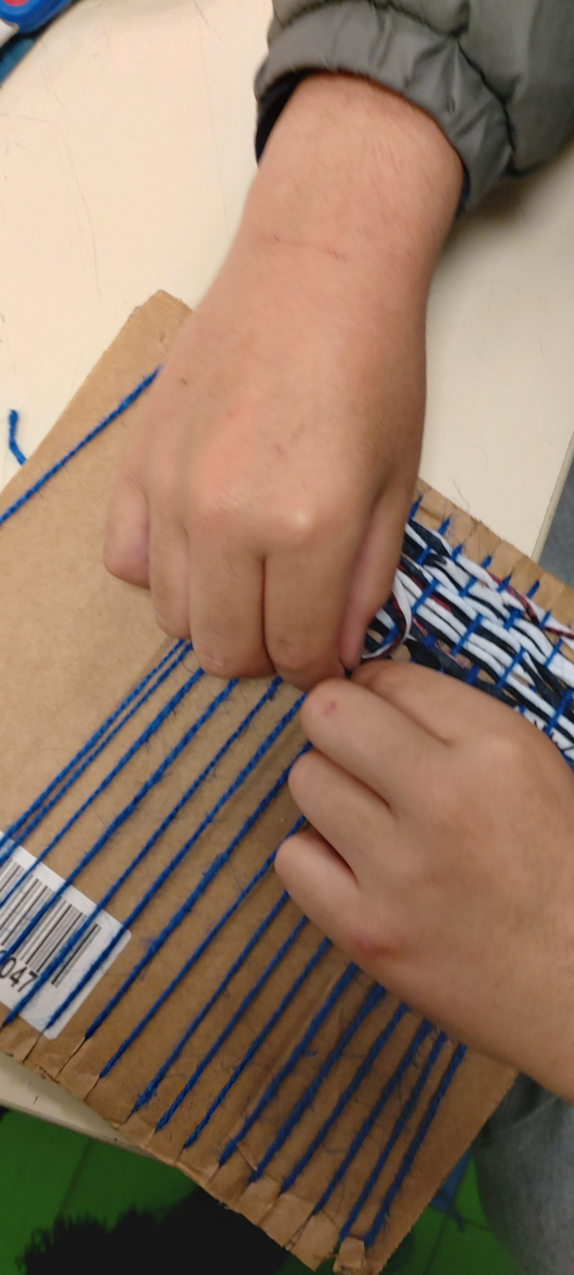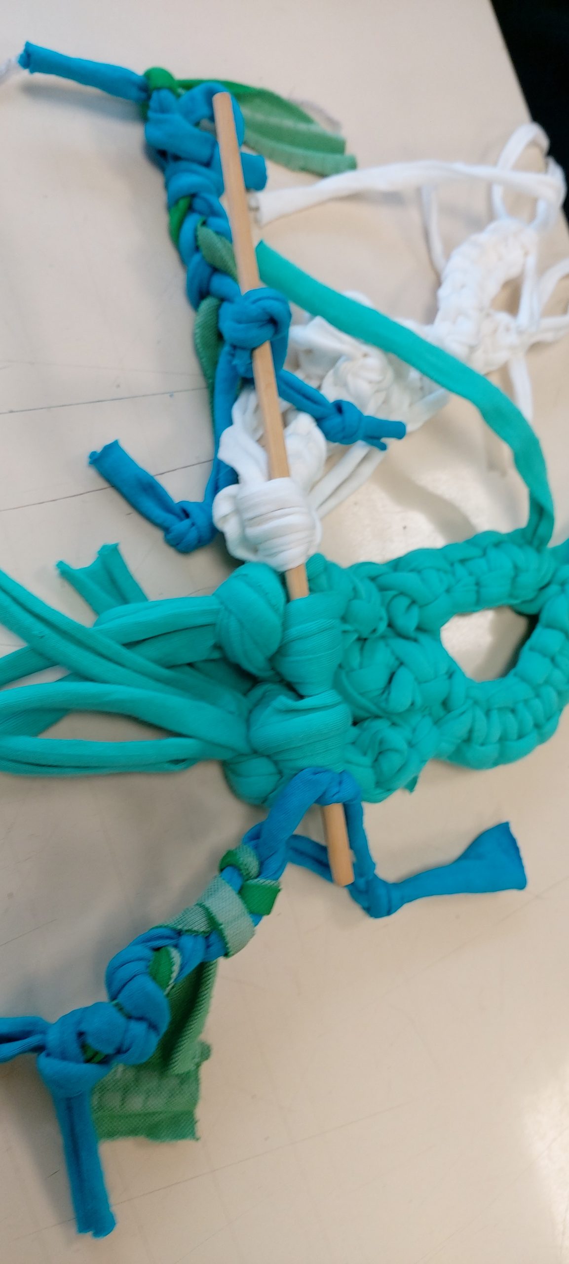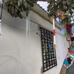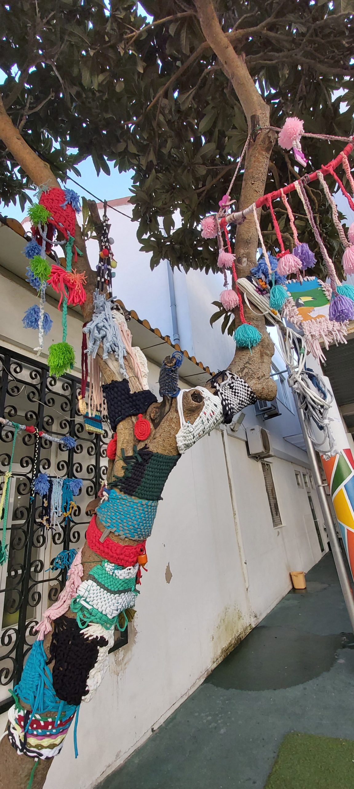 Oficina Criativa – “Tecer afetos” – Com base em histórias, construção de um tear com objetos cuja composição traduza uma memória de afetos. Colocação dessas construções na árvore do pátio.