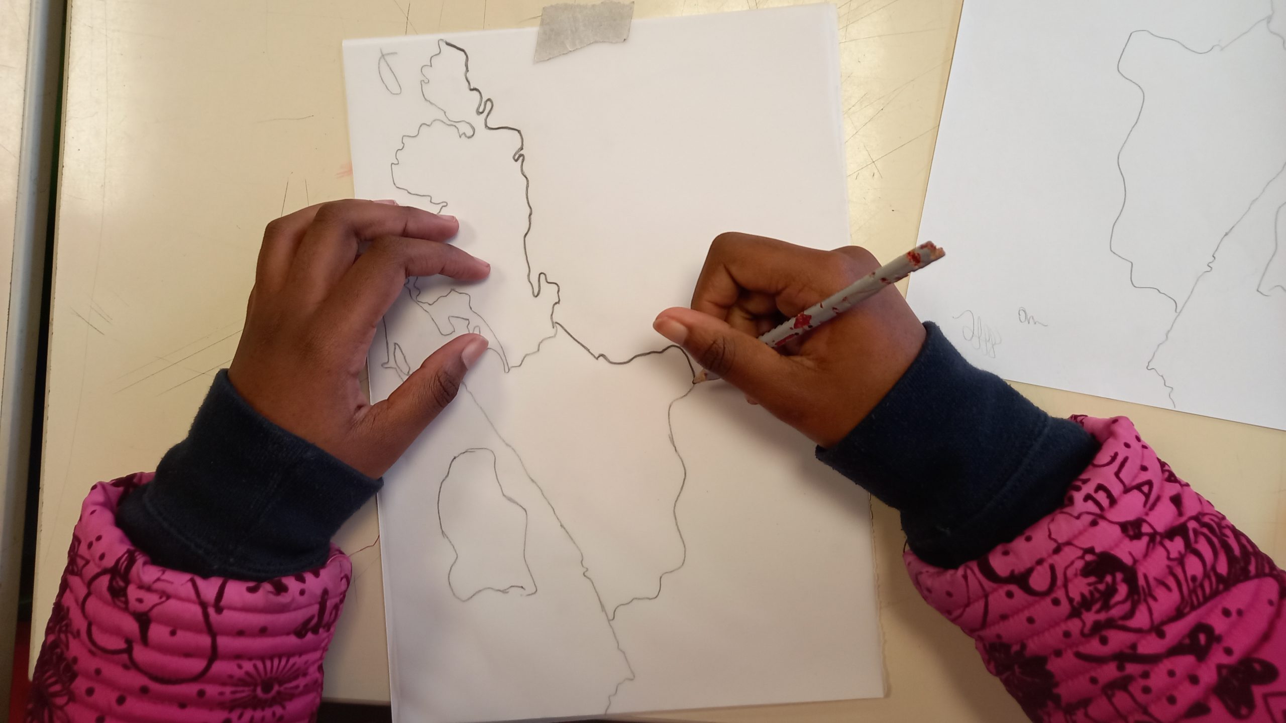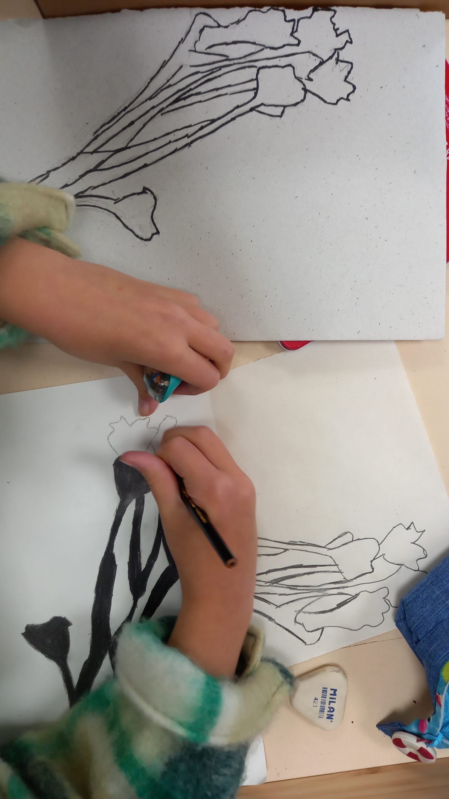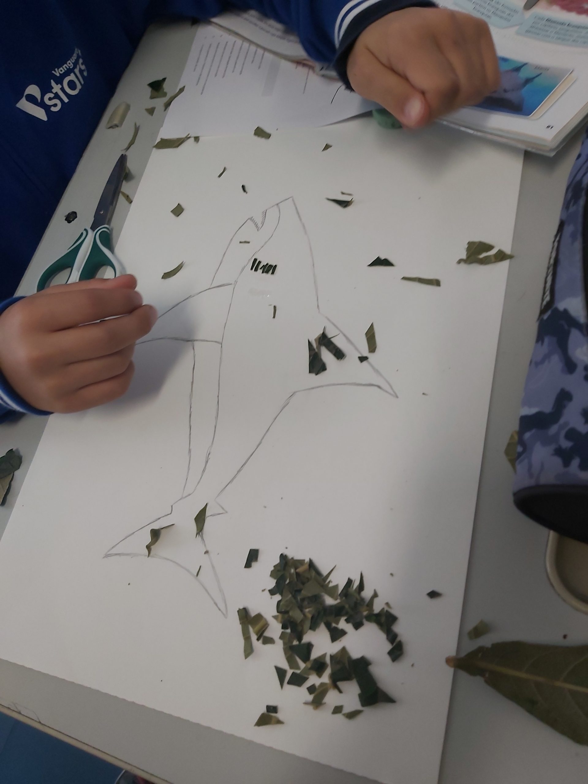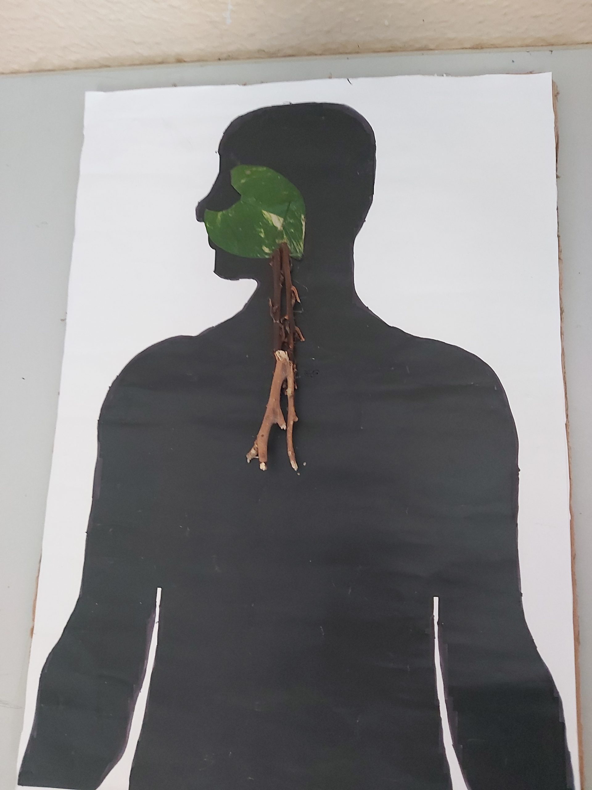 Ciências Naturais – Os alunos representaram o sistema respiratório humano e de alguns animais a partir da silhueta e representando os órgãos com elementos de plantas (pequenos ramos, sementes, folhas, etc.) Discutiu-se a importância das plantas na produção de oxigénio, gás essencial à sobrevivência dos restantes seres vivos.