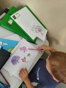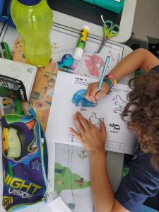 Matemática: Imaginaram qual o caminho percorrido pelo Ícaro no labirinto. Assim e de olhos vendados os alunos percorreram caminhos imaginários com base em orientações espaciais dadas pela professora. “Esquerda” / “Direita” / “Em Frente” / “Atrás” / “Entre”