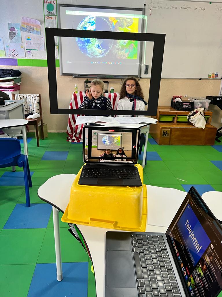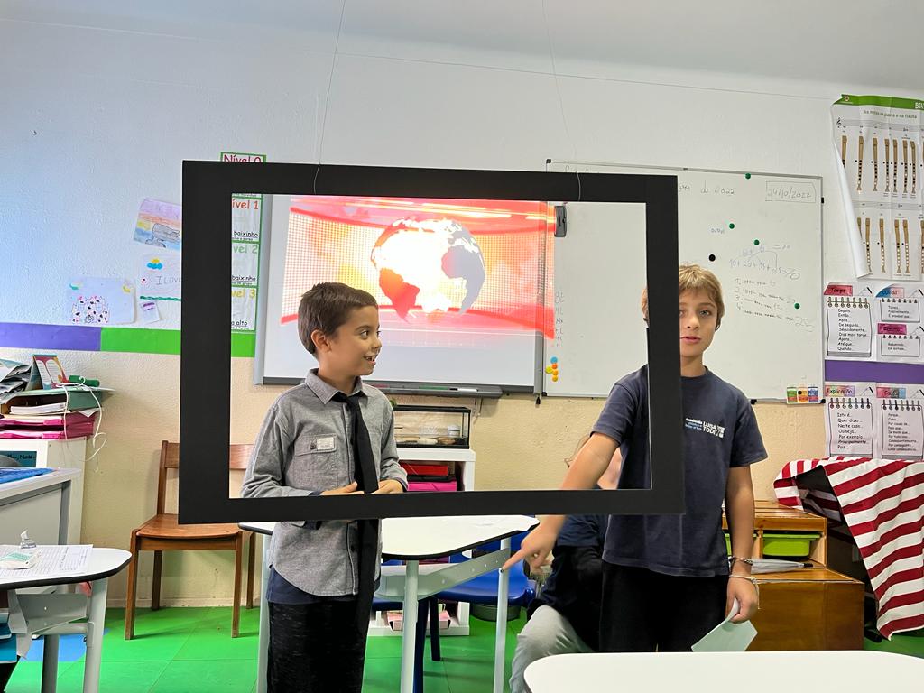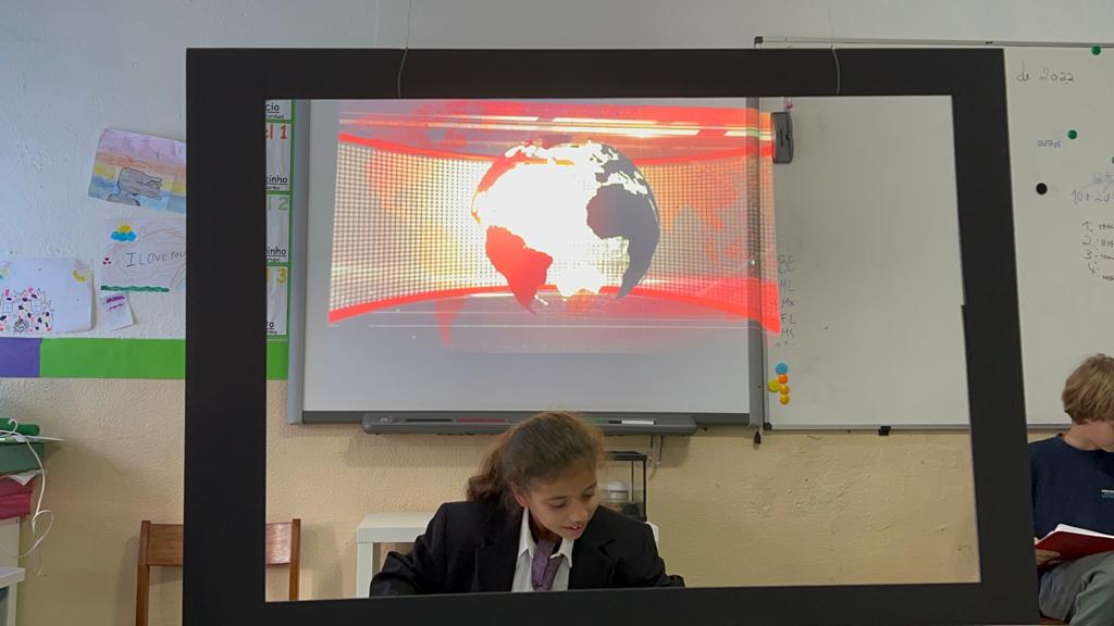 Além disso, dramatizámos as nossas reportagens! Construímos um estúdio televisivo na sala, trouxemos acessórios (roupas mais formais), … para tudo parecer mais real!