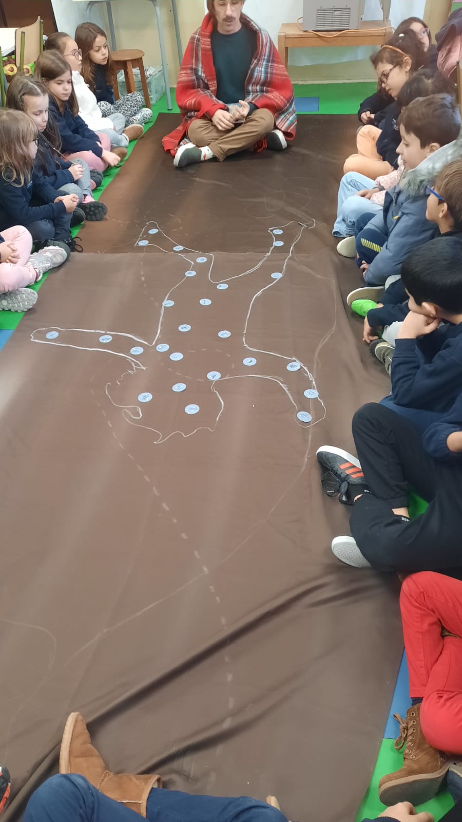Na expressão dramática/teatro realizámos o jogo de criação de histórias a partir do livro “Céu de sardas”; e o jogo: a palavra e o corpo – improvisação.