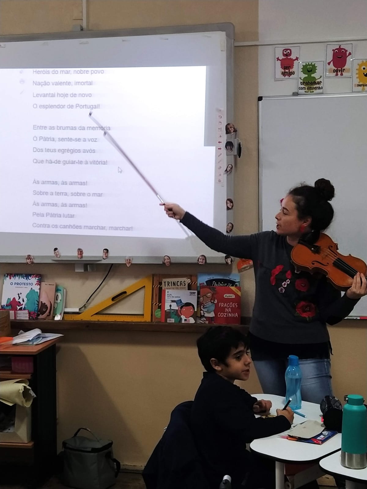 Na música, aprendemos e cantámos a música “Rei D. Dinis” da Maria Vasconcelos.