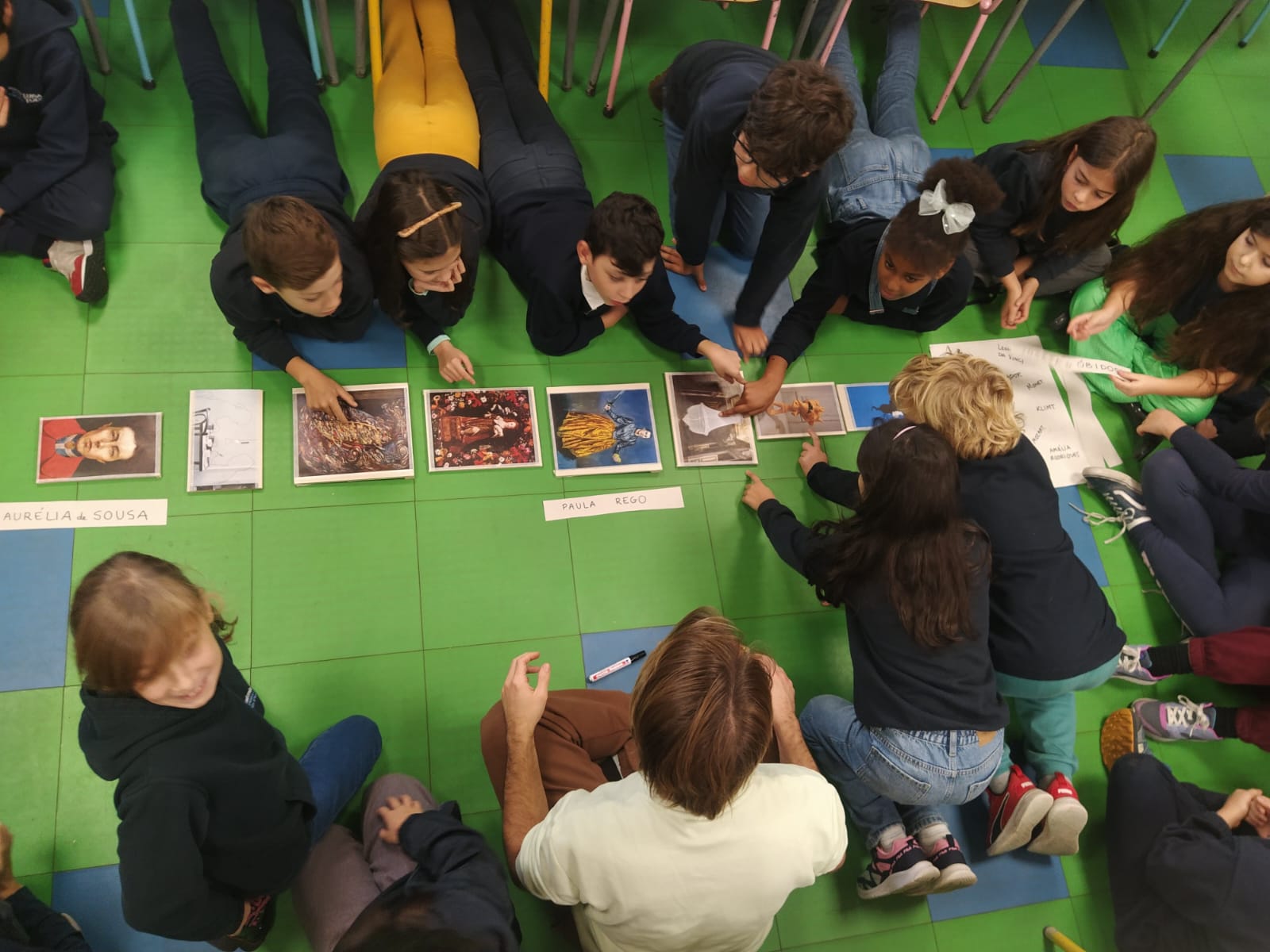Nas artes visuais, refletimos sobre a história da arte e confrontámos a realidade da quantidade de mulheres artistas e homens artistas. Desta forma, conhecemos várias mulheres artistas da exposição “Tudo o que eu quero”. Na dramática, na continuação do estudo de artes visuais, criámos narrativas a partir da observação de obras de arte.