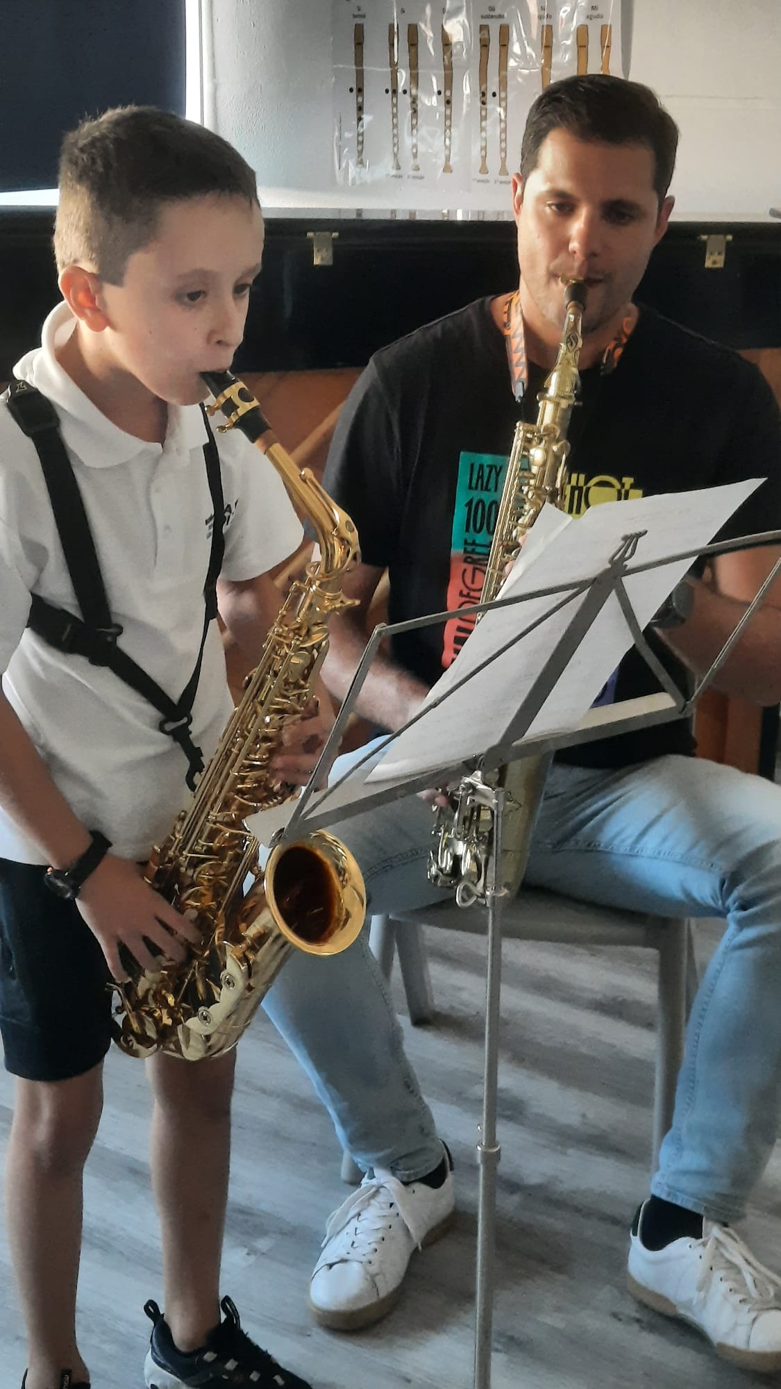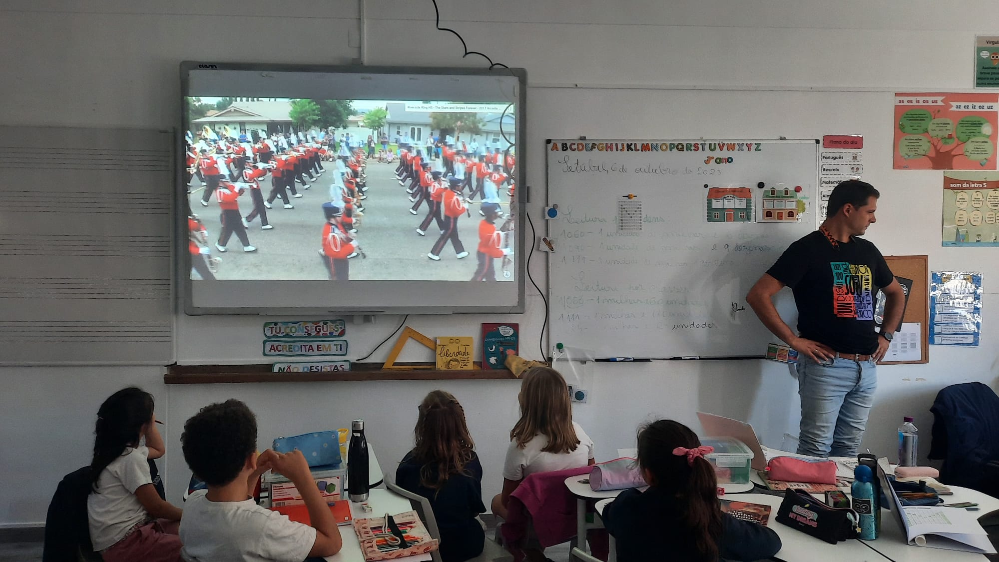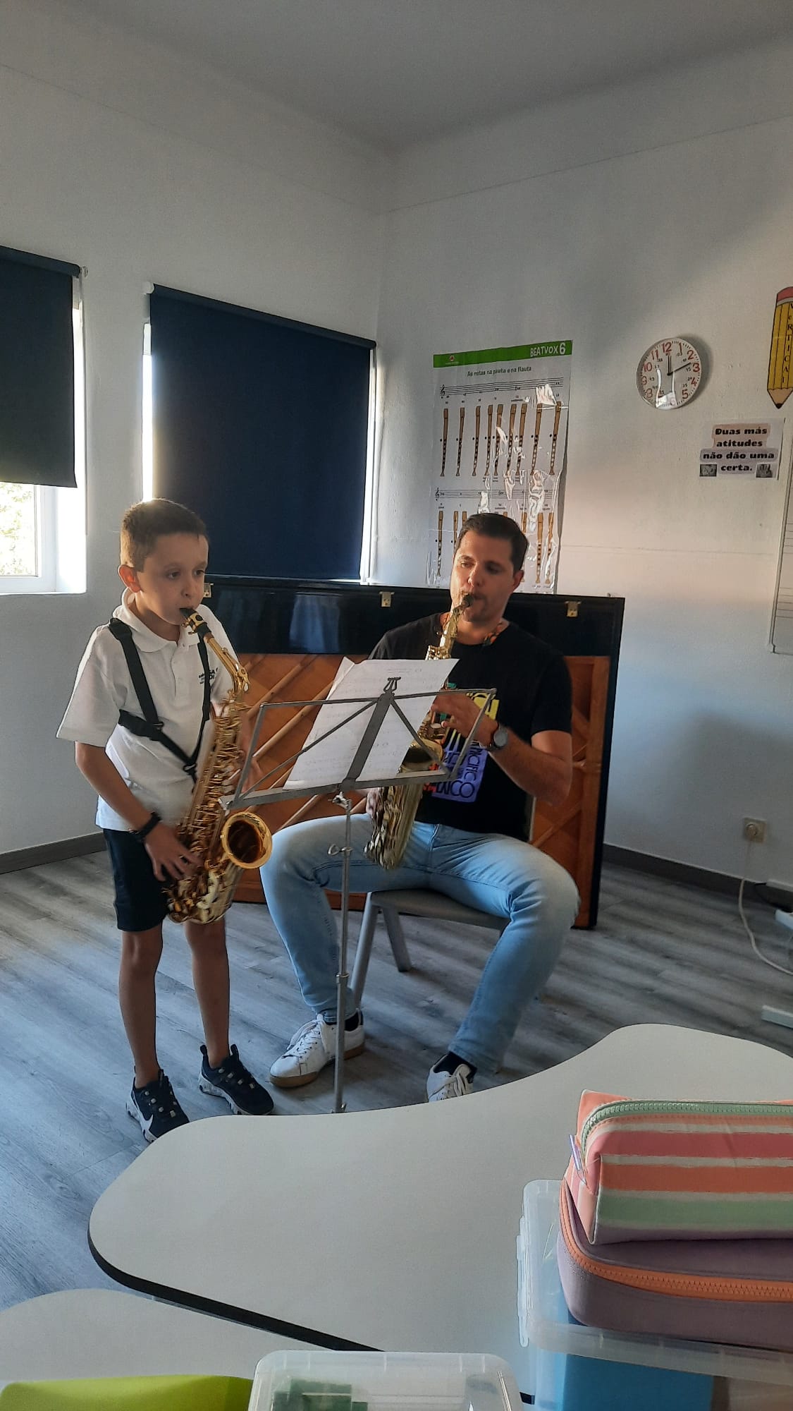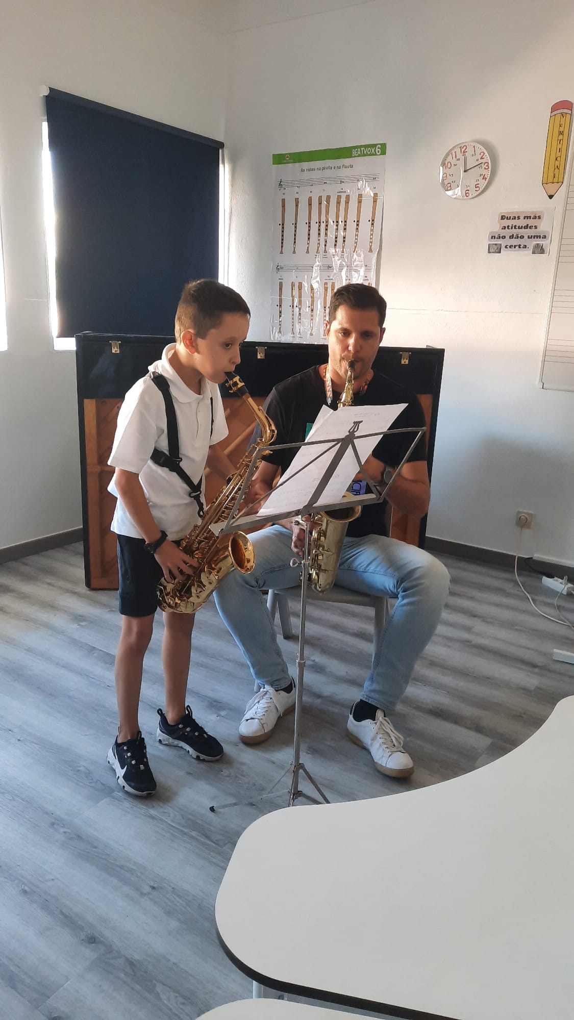 No instrumento o professor de saxofone falou-nos e mostrou-nos vídeos sobre Marching in.