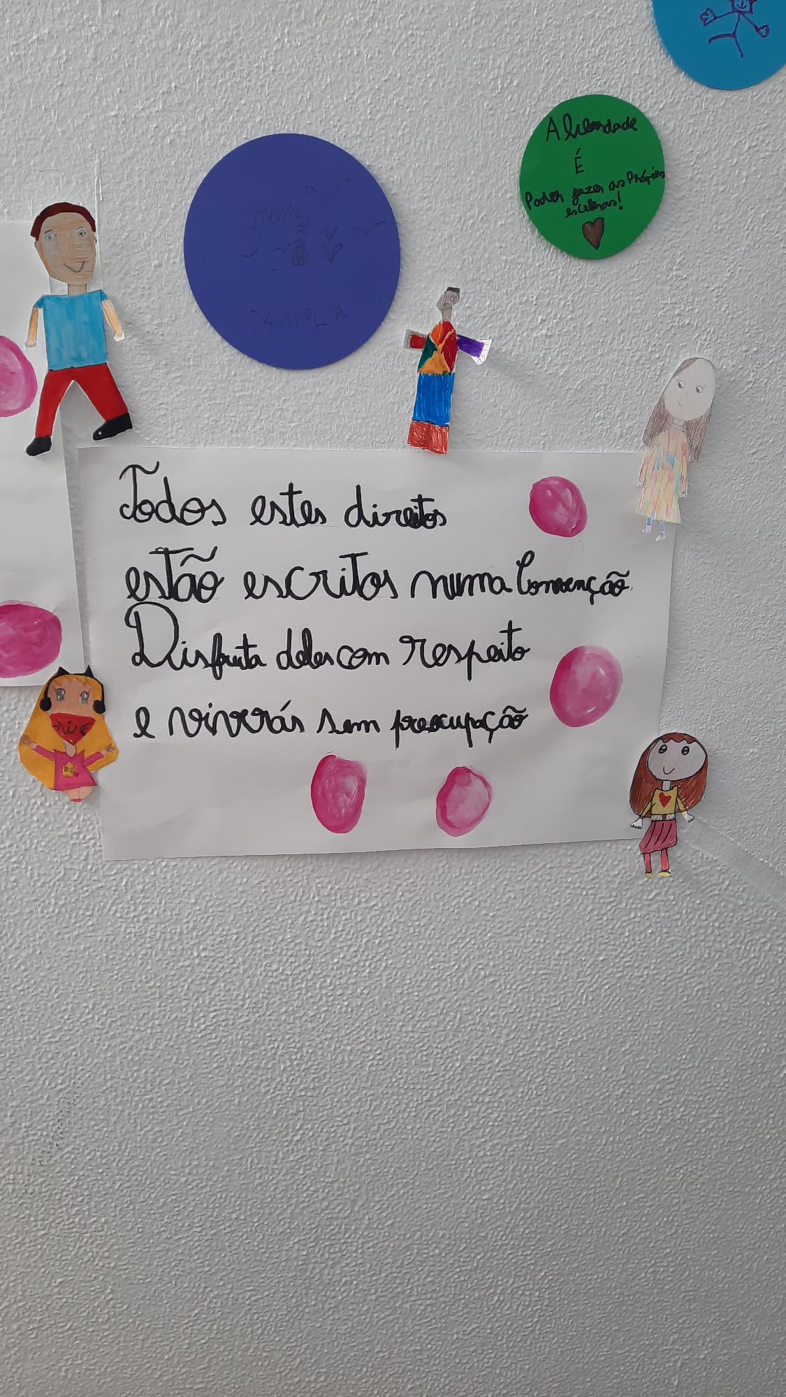 Em estudo do meio comemorámos o dia da paz, onde analisámos alguns artigos da Convenção sobre os direitos da criança e observámos casos de desrespeito dos Direitos da Criança. Falámos e analisámos imagens do nosso dia a dia sobre problemas sociais existentes na comunidade.