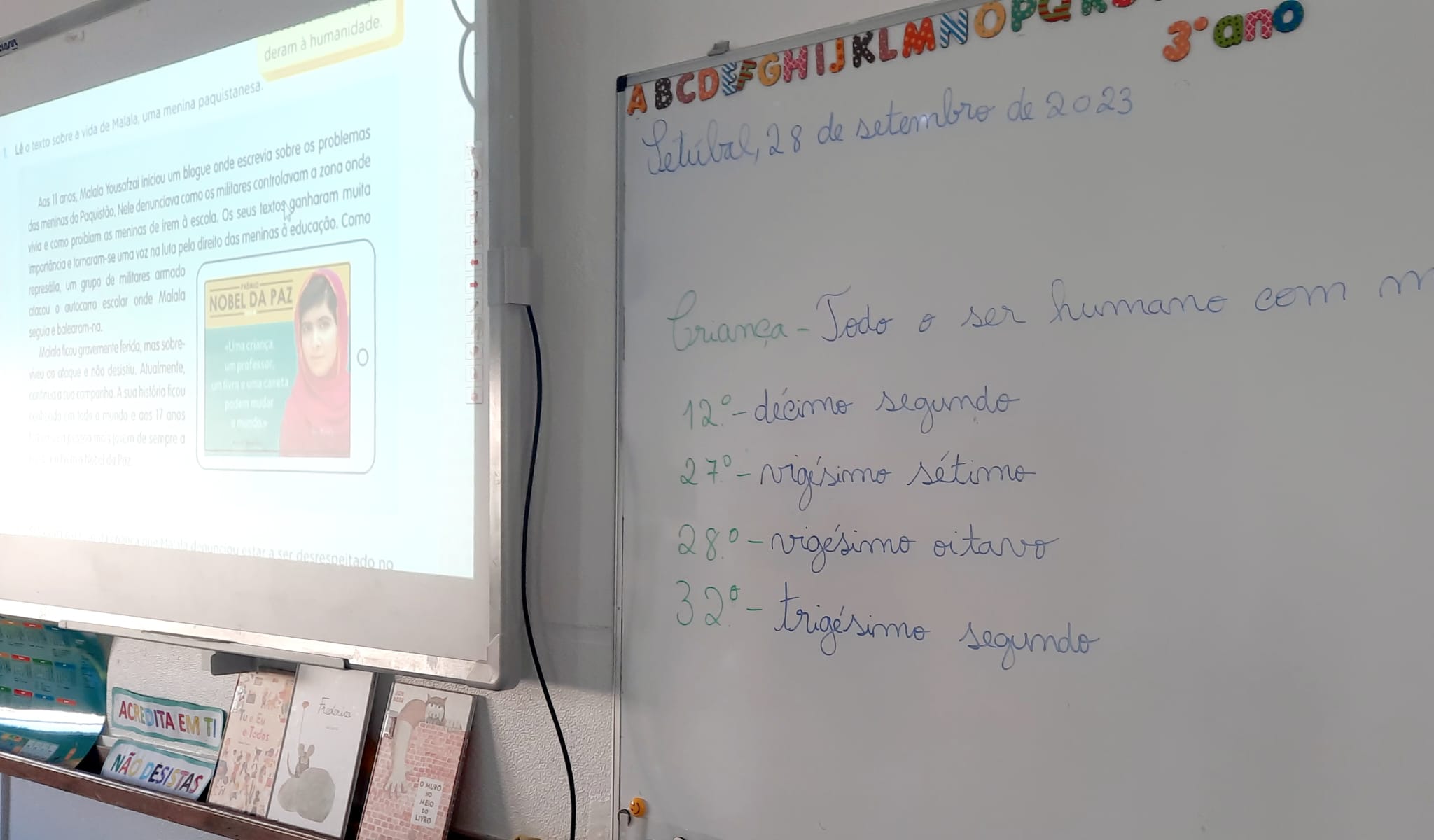 Na disciplina de matemática fizemos operações com o número de direitos da criança da Convenção. Através da análise dos artigos da Convenção descobrimos números ordinais e depois completámos a lista até ao centésimo.